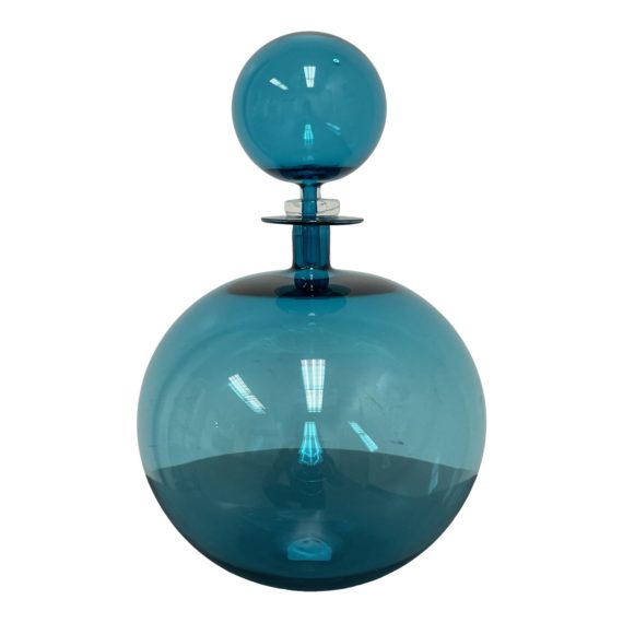 Joe Cariati Handblown Steel Blue Low Round Petite Decanter. Original Price: $595