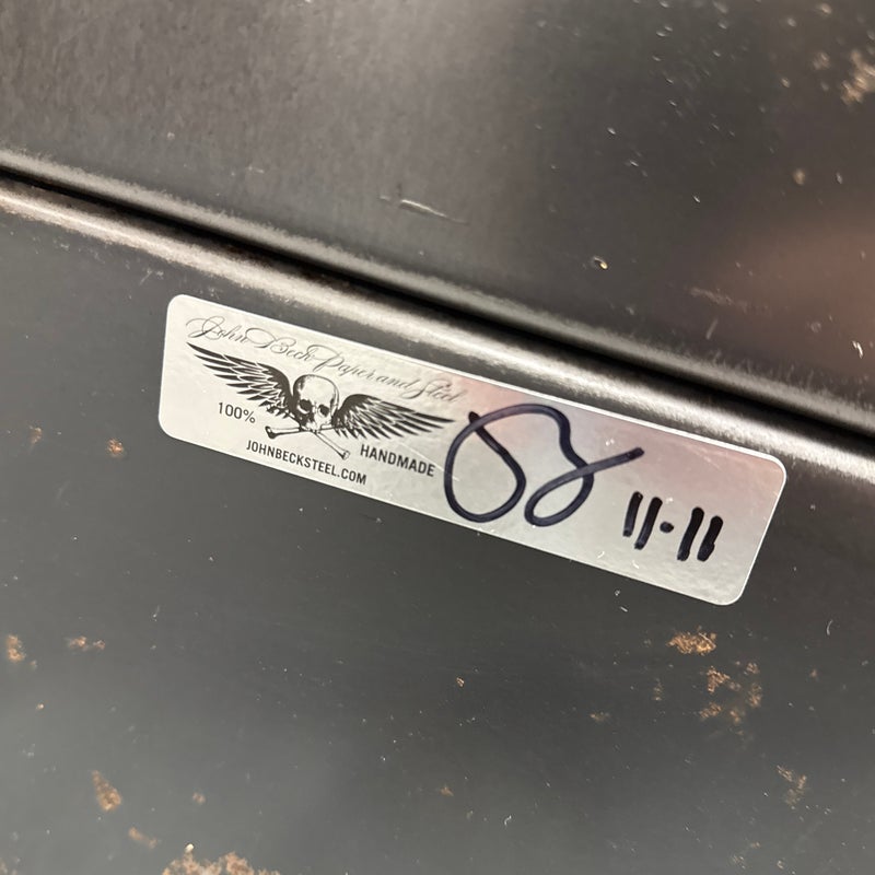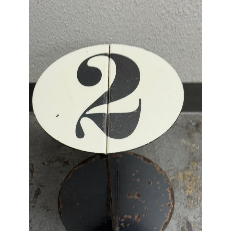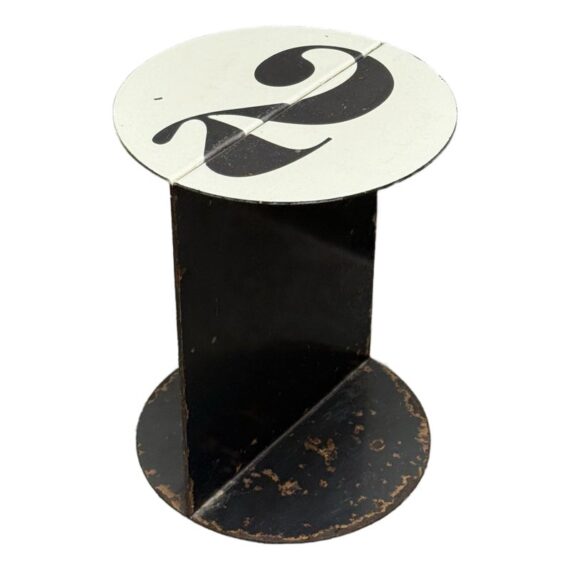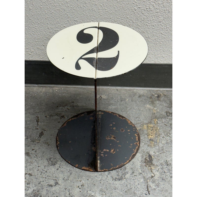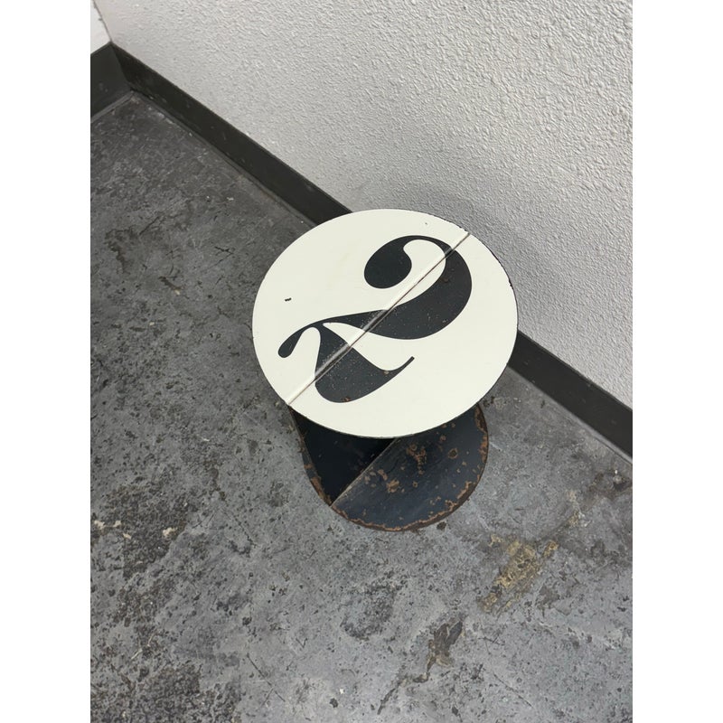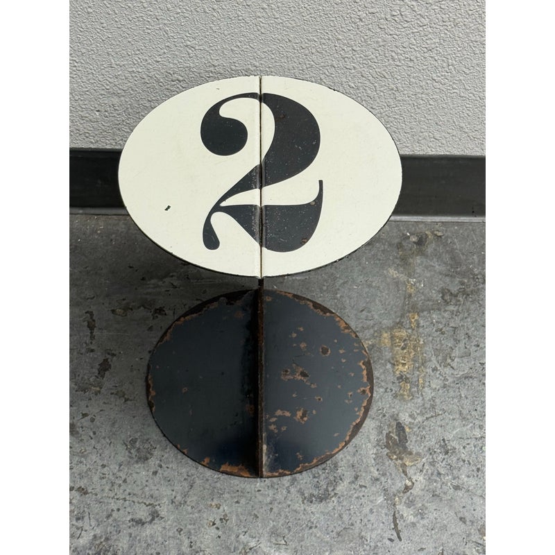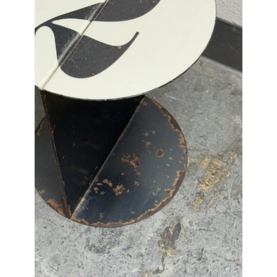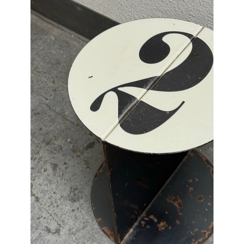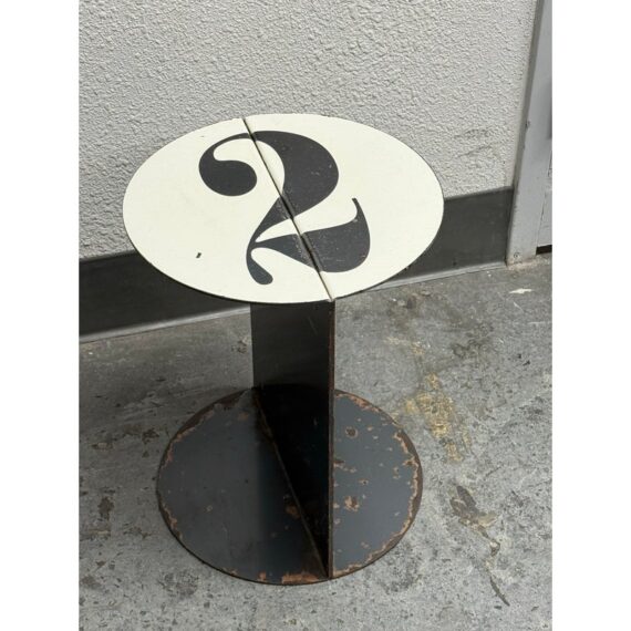 Design Plus Gallery presents the No. 2 Side Table from John Beck Steel. This masculine side table has a black base with signs of distress that is made to order. The table top has a white surface with the number 2, resembling a pool ball. The artist himself created this table with his keen eye for detail and a passion for his craft, John brings his expertise to every step of the process. From the initial concept to the final finishing touches, he pours his heart and soul into each one of his handmade creations. The table is in distressed condition that adds to its edgy appeal. Made in USA.