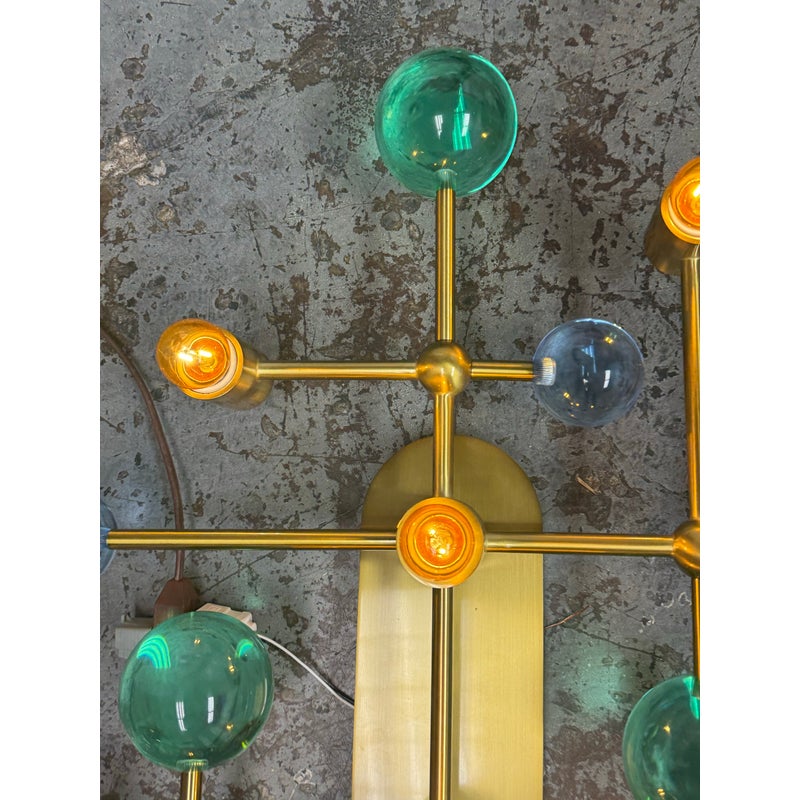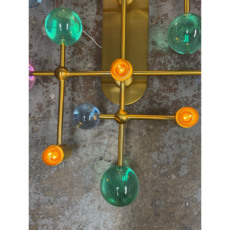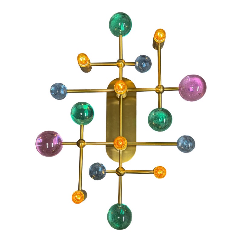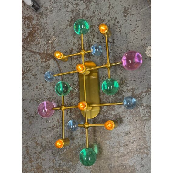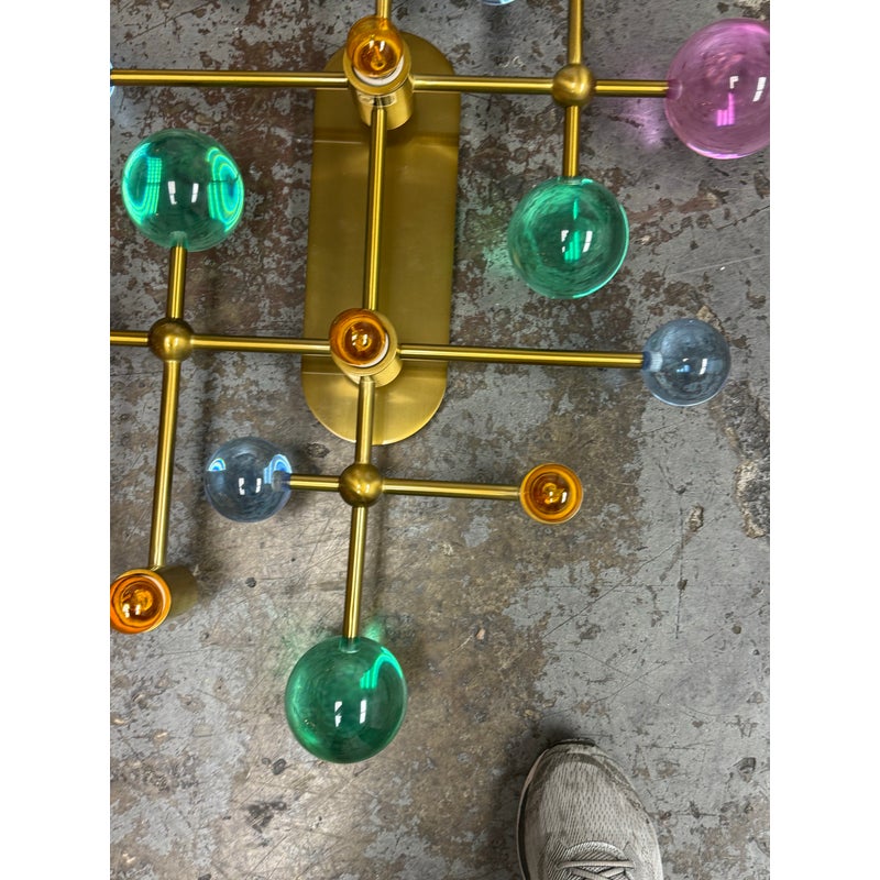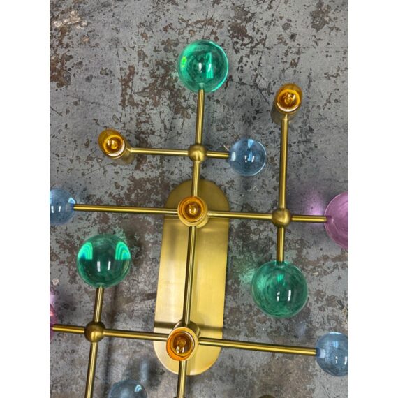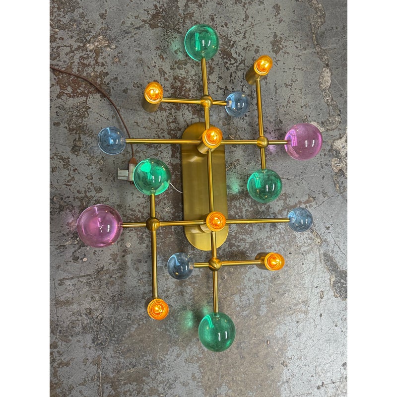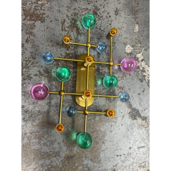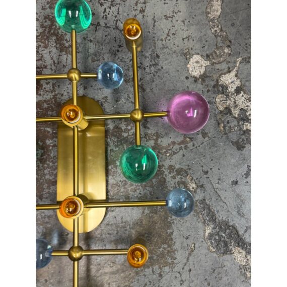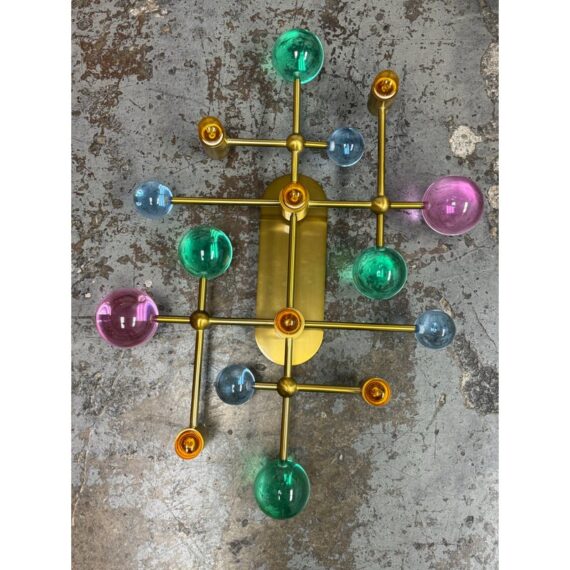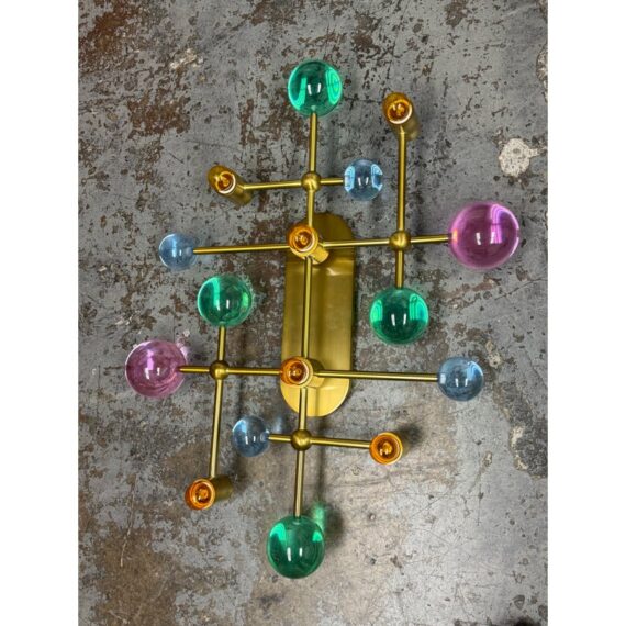 Design Plus Gallery presents the Globo Fretwork Wall Sconce from Jonathan Adler. The Globo Fretwork Wall Sconce offers a chic, ultra fun look that will pop in any room with its unique body. Composed of dreamy orbs and cabochons, in a constellation of acrylic spheres floating on slim brass stems, casting warm shadows of light across your room.