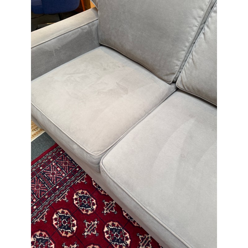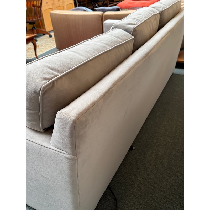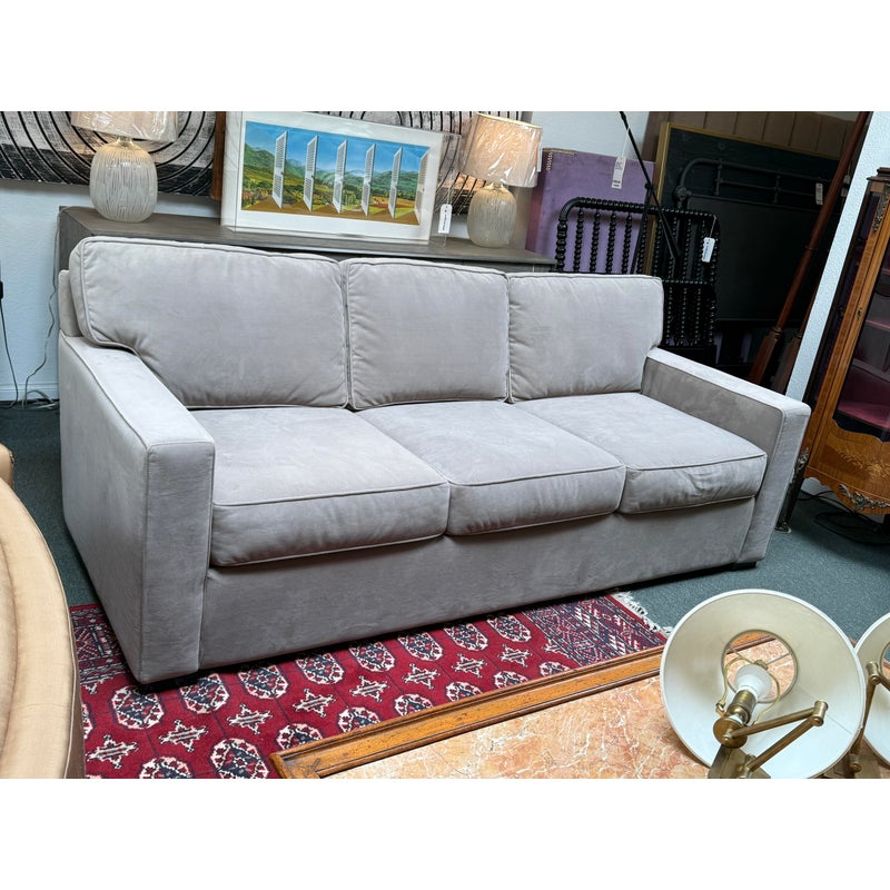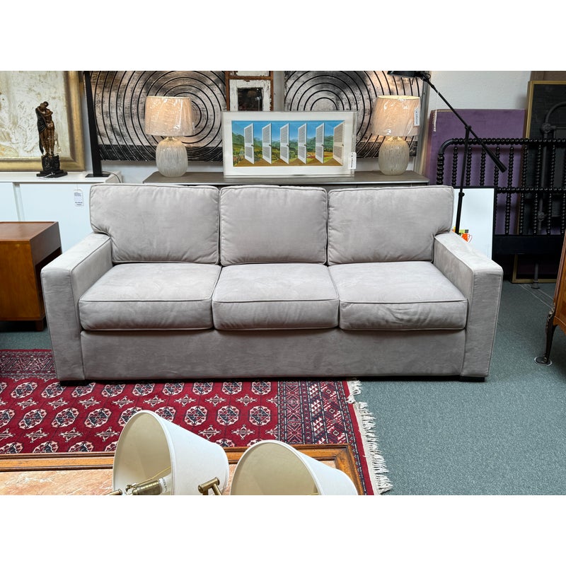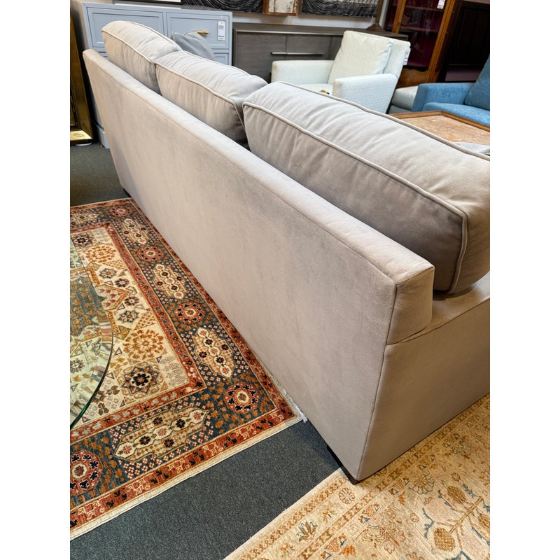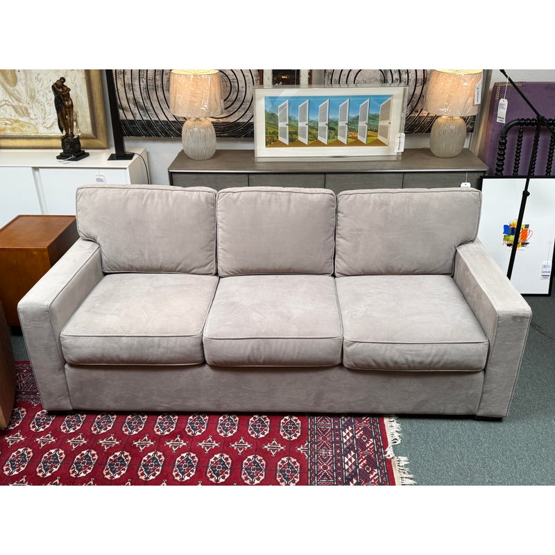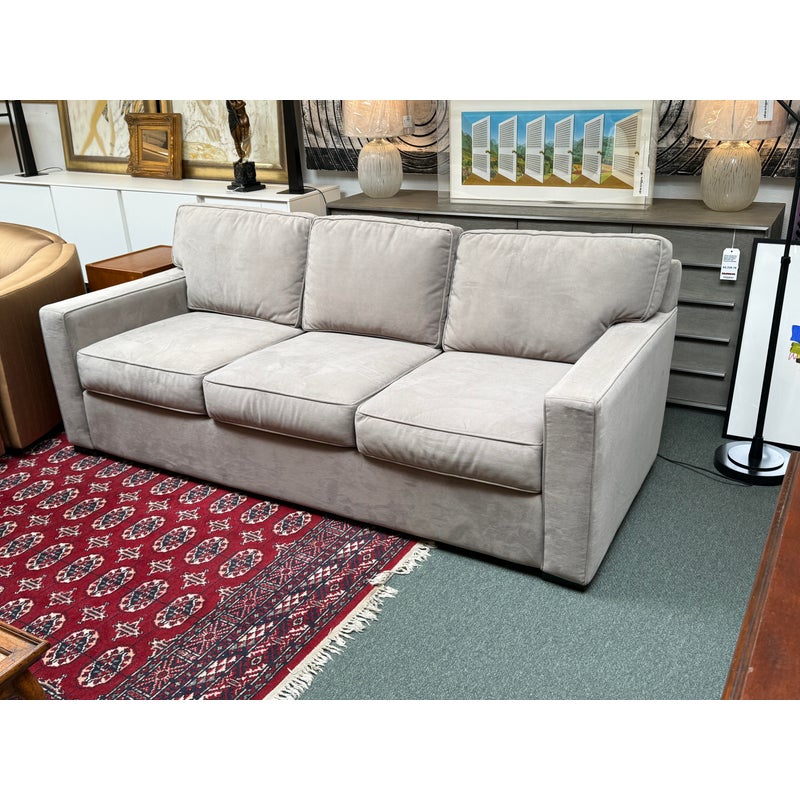 Design Plus Gallery presents the Radley Sofa by Jonathan Louis. This contemporary seating fixture is styled to perfection. the minimalistic piece showcases impeccable tailoring and richly textured upholstery, all set on mocha-finished legs. Sharp angles & clean lines make this sofa a best seller across the board. it is in good condition for its usage. Made in the USA.