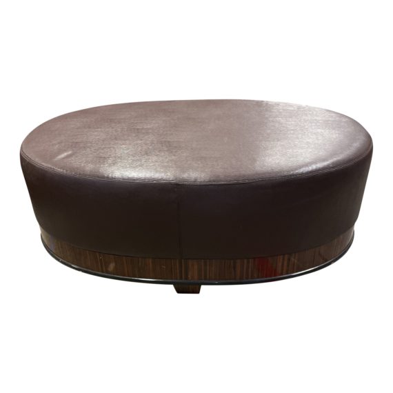 Jonathan Rachman Custom Design Vinyl + Zebrawood Oval Ottoman. Original Price: $4,124