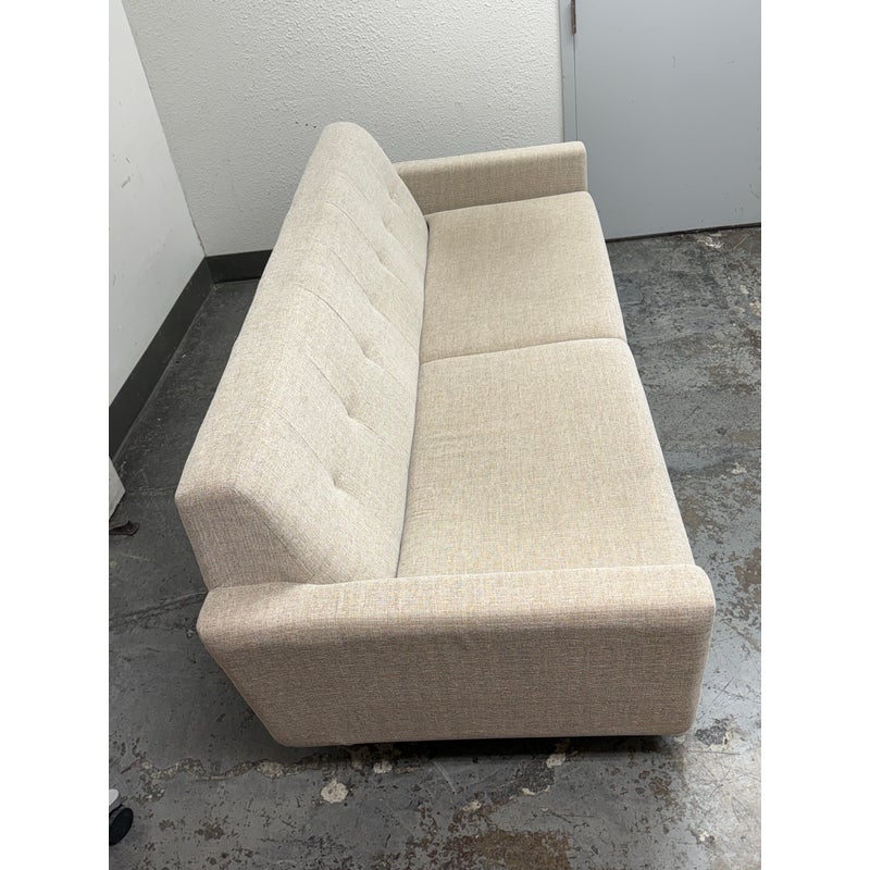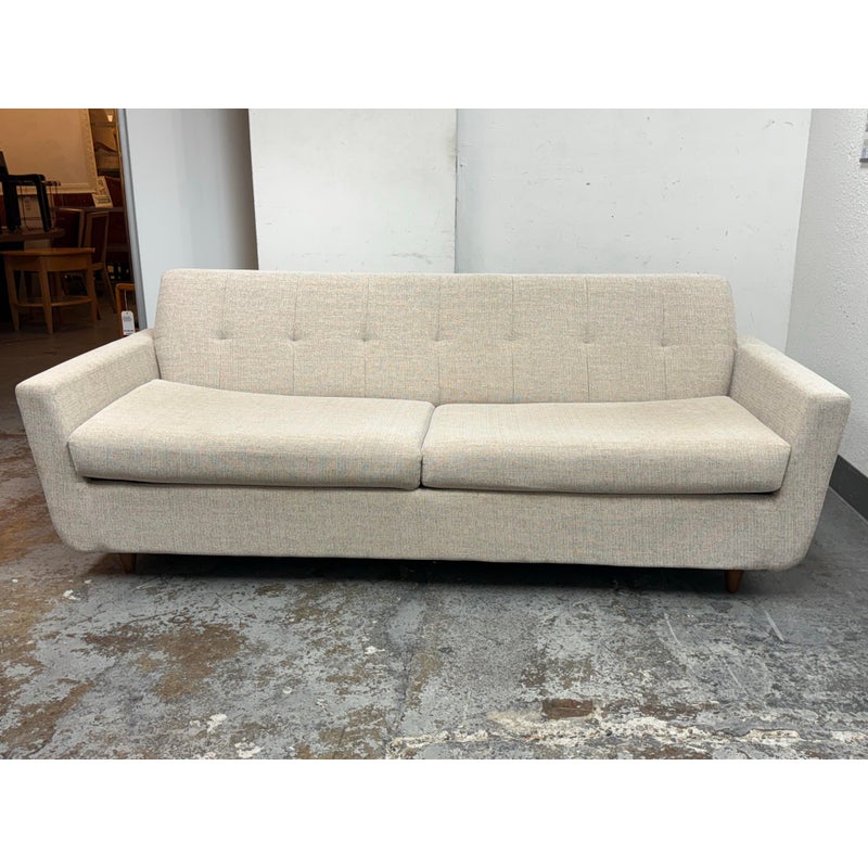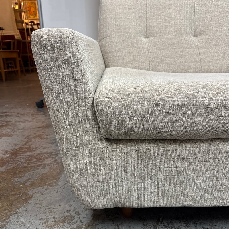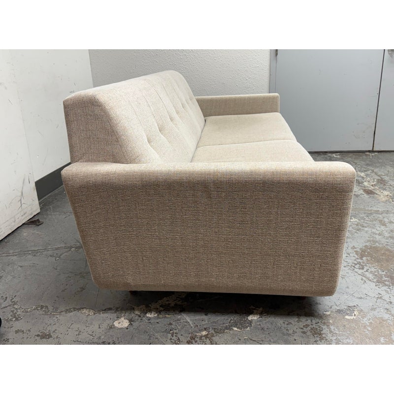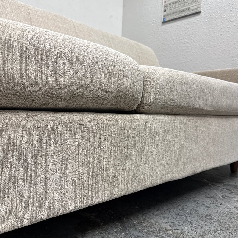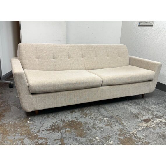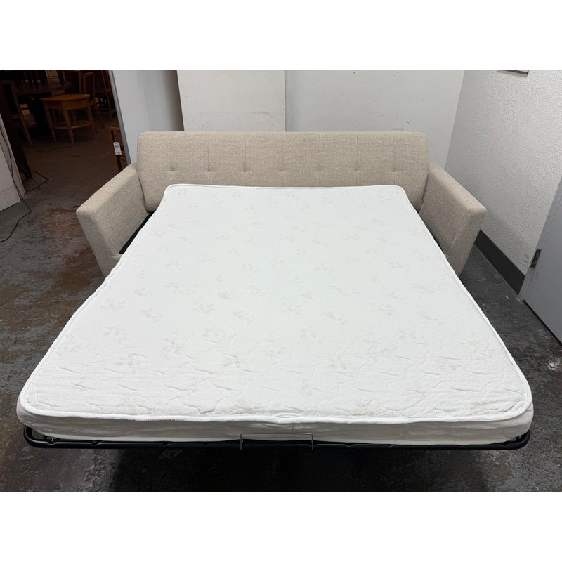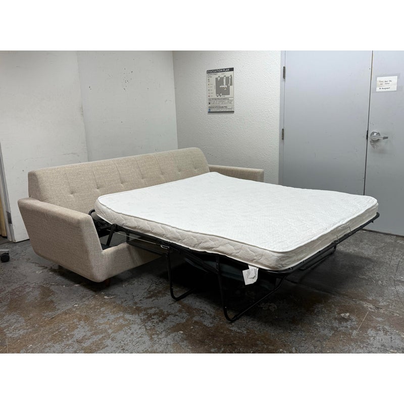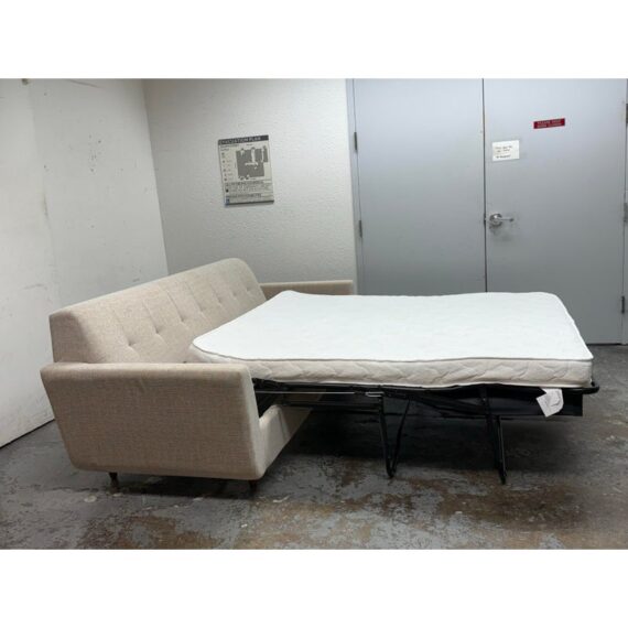 Design Plus Gallery presents the Hughes Cody Sandstone Queen Sleeper Sofa from Joybird. Settle into the Hughes’ tufted cushions and supportive seating, or unfold a cozy mattress for overnight guests. Regardless of the occasion, this Mid-Century masterpiece will serve as an adaptable focal point with its sleek lines and timeless aesthetic. No matter if you’re throwing a party or unpacking a spare bed for visiting guests, the Hughes Sleeper Sofa can handle it all in Mid-Century style. Some visible surface wear is present to the fabric but overall is in good condition.