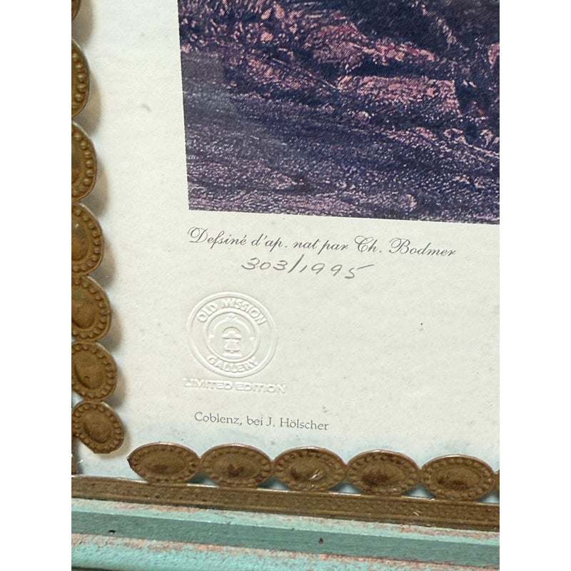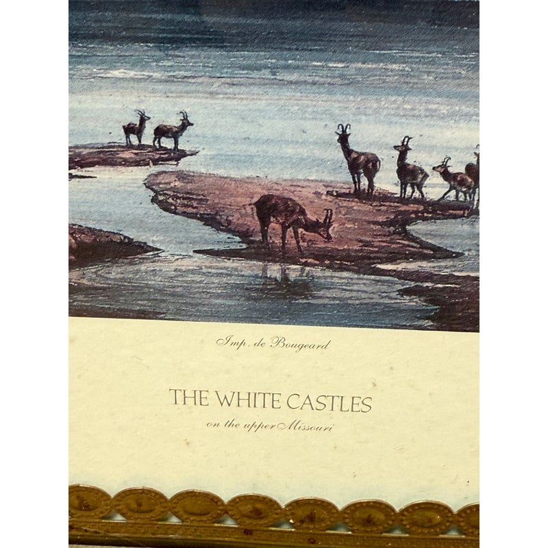 Design Plus Gallery presents “The White Castles on the Upper Missouri” a Limited Edition Print by Old Mission Gallery, from Guild Master Arts. The limited edition print, 303/1995, was original commissioned to Kark Bodmer by the Prince of Prussia to document his expedition through the American West, including the Plains + Rockies in the 1830’s. Professionally matted, protected by glass and custom framed in copper-trimmed painted wood frame. Light surface wear; condition is consistent with age and use.