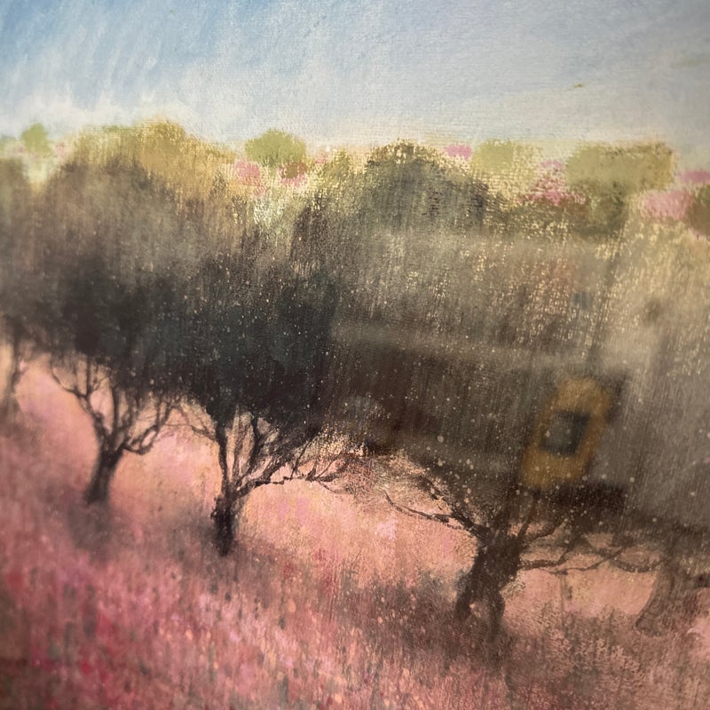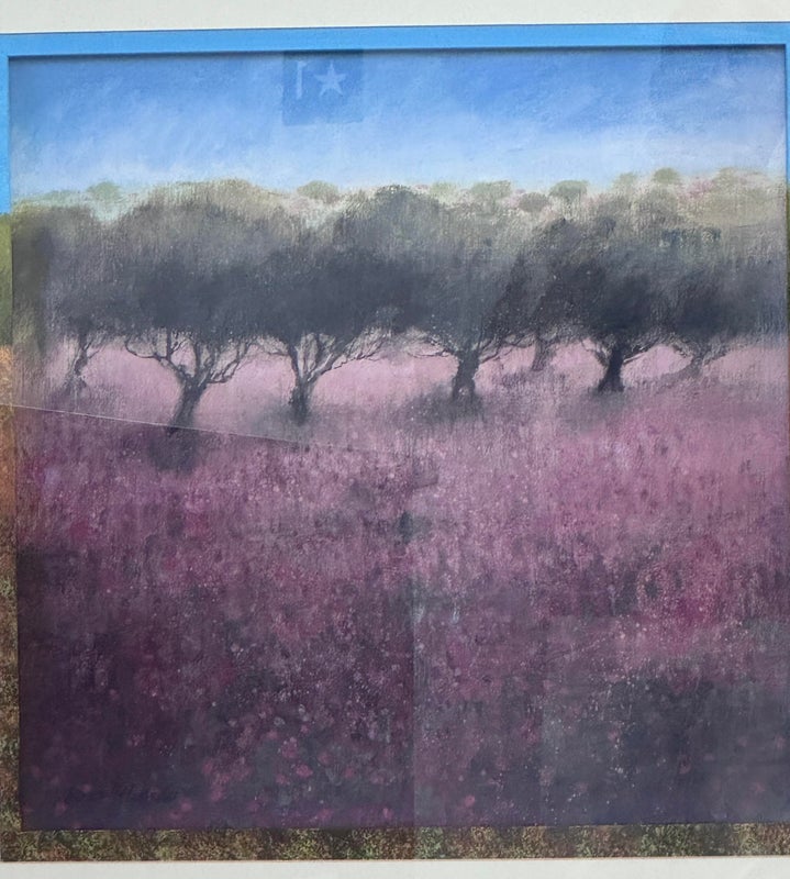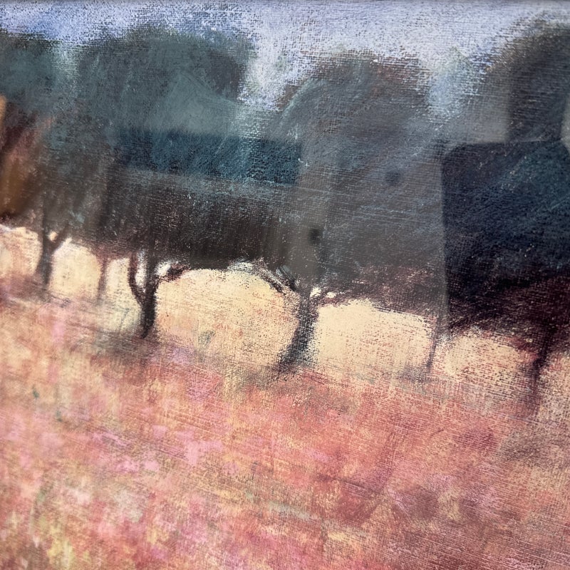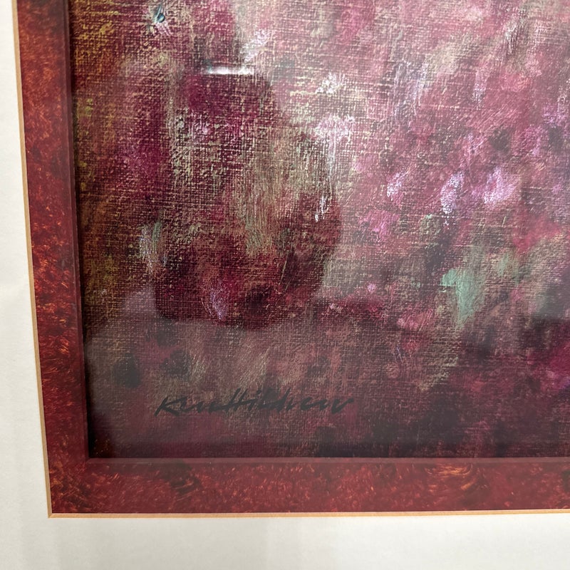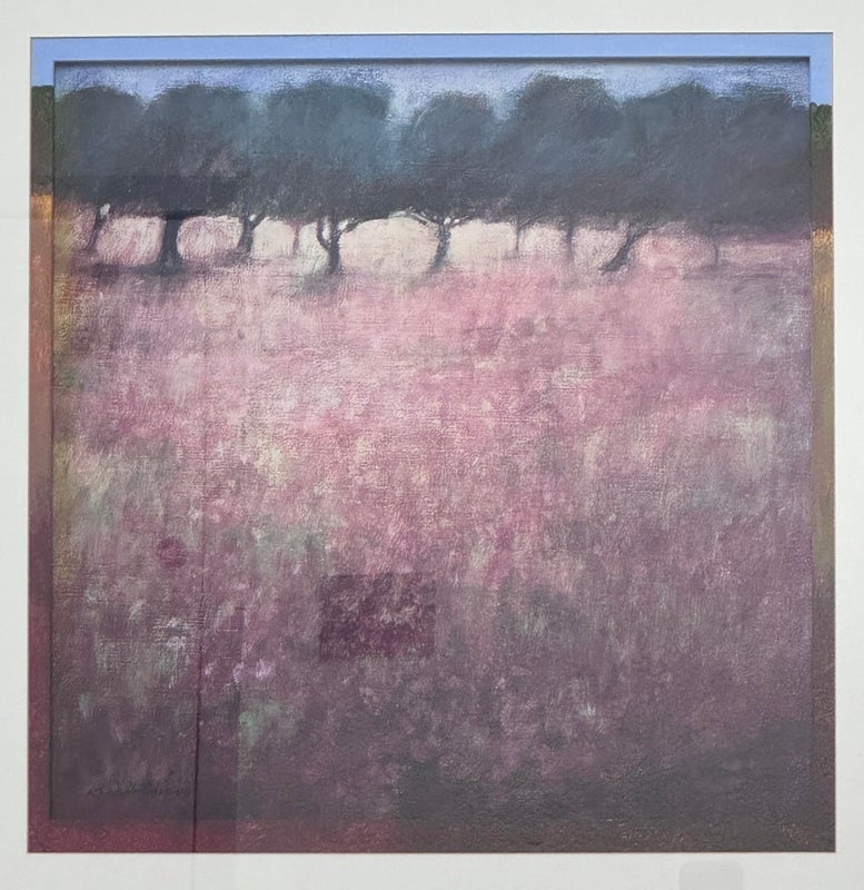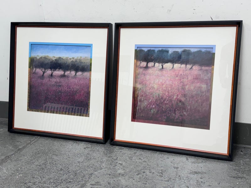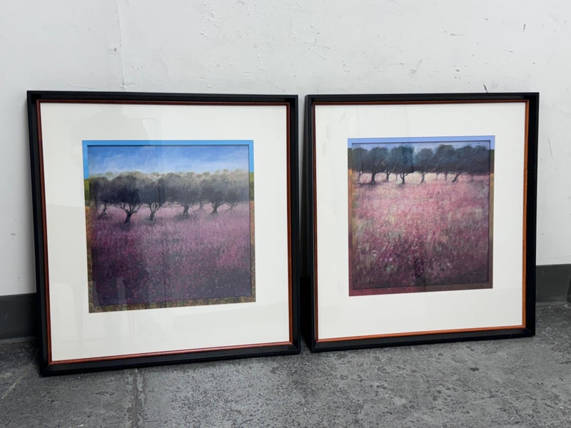 Design Plus Gallery presents a Pair of “Orchard” Prints from Ken Hildrew. The duo show trees blowing in the pink field during the autumnal harvest season. Well known art work that has been reproduced for all to enjoy. Is in good condition with visible and minimal signs of wear on frame. Was used for staging purposes.