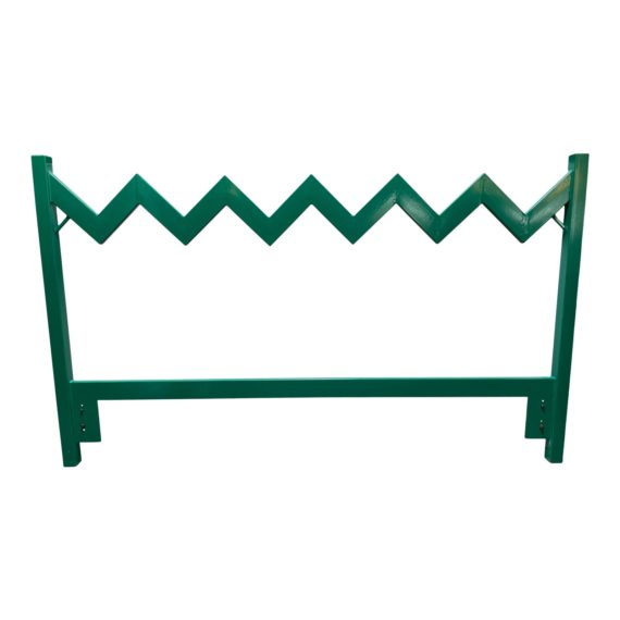 Design Plus Gallery presents a Custom Headboard by Bruce Chaban. The intense green headboard, in the Memphis style, is a metal masterpiece. Do you see mountains, waves or