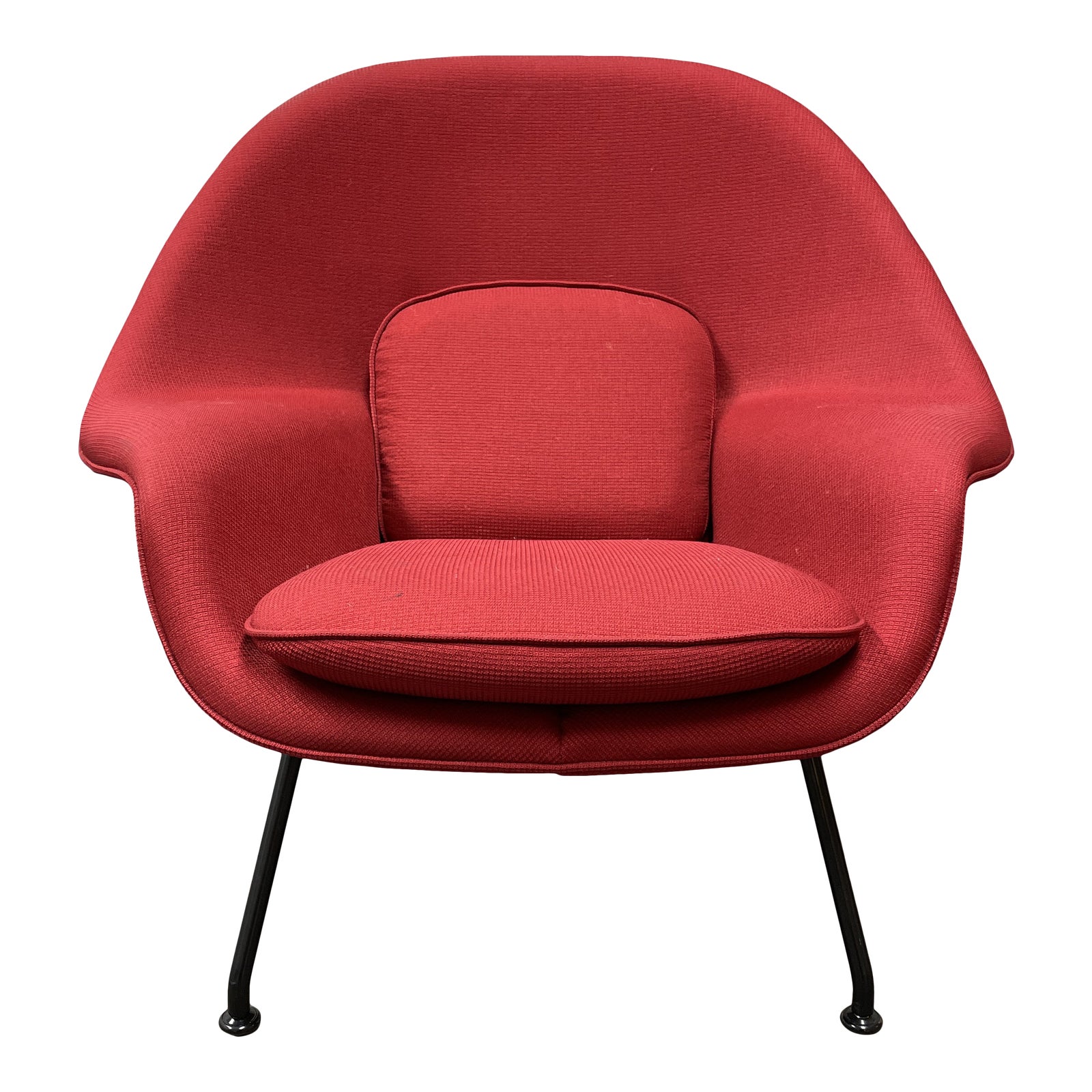 Like many of Saarinen’s furniture designs, the Womb Chair required production techniques and materials still in the infancy of their existence. Saarinen and Florence Knoll found a boat builder in New Jersey who was experimenting with fiberglass and resin to help develop manufacturing methods for the new chair. Florence Knoll: “He was very skeptical. We just begged him. I guess we were so young and so enthusiastic he finally gave in and worked with us. We had lots of problems and failures until they finally got a chair that would work.” – Knoll