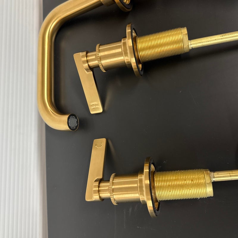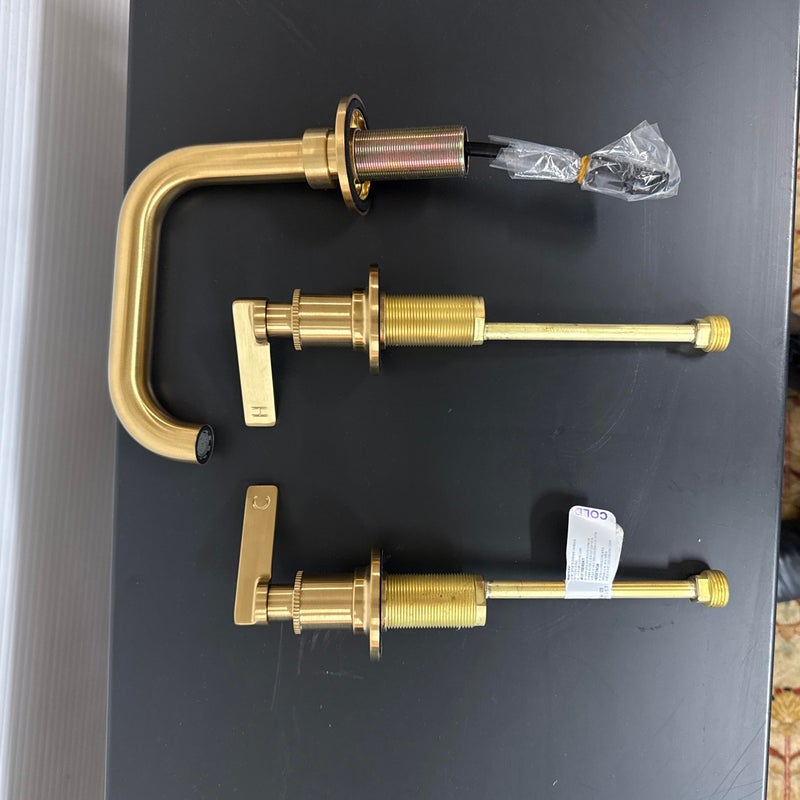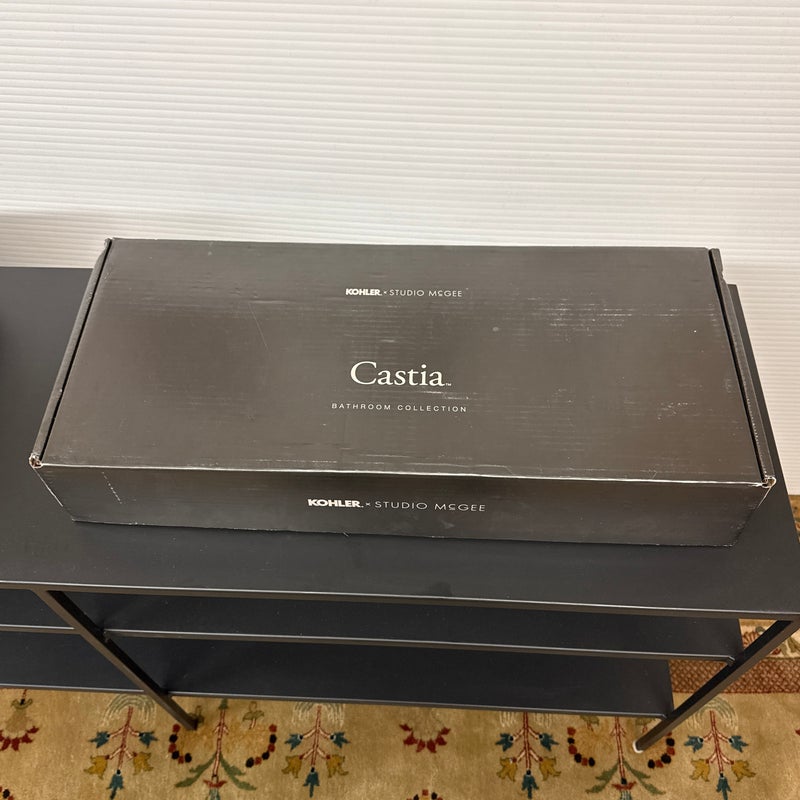 Design Plus Gallery presents a Set Up of Bathroom Faucet with Drain Assembly by Studio McGee for Kohler Castia. Drawing inspiration from the archives, the Casita bathroom faucet and accessory collection from Kohler x Studio McGee combines classic and modern influences in a timeless expression for the home. Crafted with meticulous attention to detail, the faucets showcase the artistry of precision machine knurling and delicately stamped levers while the entirety of the collection displays stacked connection points in a subtle homage to the raw beauty of pipe fittings. Ever versatile, the Casita collection effortlessly harmonizes with a variety of environments. The set up is new/in box with minimal wear from open box viewing with instructions in the box. Made in the USA.