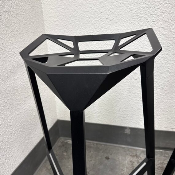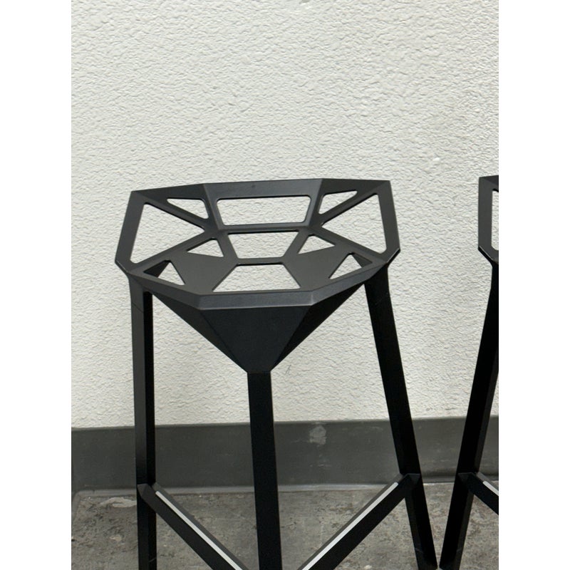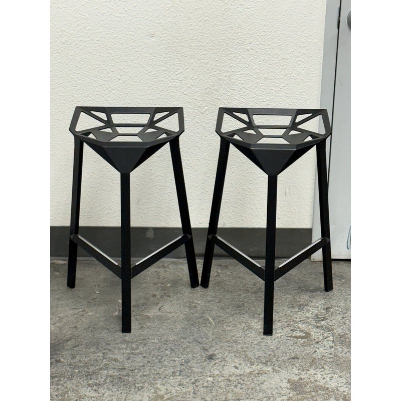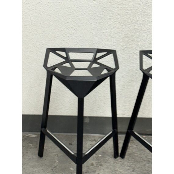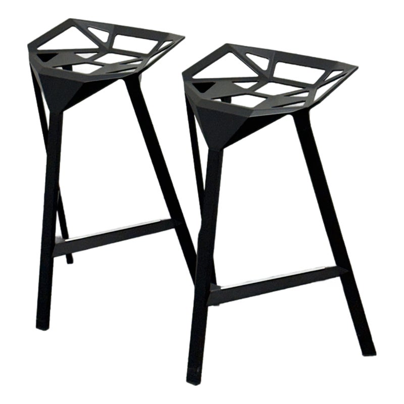 Design Plus Gallery presents a Pair of Stool_One Counter Stools by Konstantin Grcic in 2006 for Magis. Original and eye-catching, the Stool_One Counter Stool exemplifies Grcic’s signature minimalist, industrial design language. These stacking stools transform a highly engineered structure into a form that is statuesque, elegant, and immediately memorable. The design offers anodized aluminum legs paired with a die-cast aluminum seat. The seat is treated with fluorinated titanium and finished with a powder coating, ensuring long-lasting performance with a matte appearance. The stools are versatile and suitable for both indoor and outdoor environments. Made in Italy.