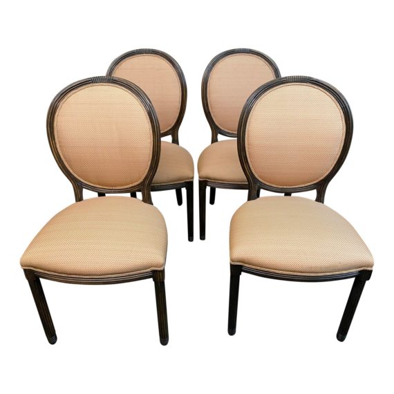 Kreiss Furniture Round Back Side Chairs + Rogers & Goffigon Fabric – Set of Four. Original Price: $2,295