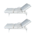 Design Plus Gallery presents a Pair of Carmel Outdoor Chaise Loungers from Kreiss Furniture. These loungers have bold lines, neutral sandalwood palette and generously proportioned scale. Crafted from metal and paint for longevity. Back height is widely adjustable for comfort; striped cushions are washable for ease of care. Light evidence of wear; consistent with age and use.
