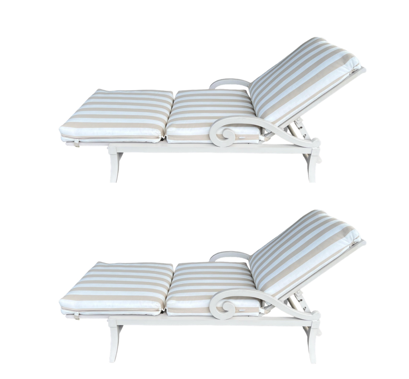 Kreiss Furniture Stripe Chaise Outdoor Loungers, Pair. Original Price: $7,180