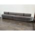 Design Plus Gallery presents a Custom Design Two Piece Banquette from Kroll Furniture. The bench seating is upholstered in two contrasting fabrics. The bench seat is covered in gray velvet while the back rest is fixed with a woven metallic gray textile. This substantial banquette is composed of two adjoining sofa sections, joined at the center by a leather band that neatly conceals the seam while adding a tailored visual break. The piece is designed to sit flush against a wall and includes wall-mount capability, making it well suited for dining banquettes, commercial interiors, hospitality settings, or large residential spaces. A wood plinth base in a deep bronze-toned coloration supports the generous scale of the seating. In good condition, visible and minimal wear from usage. Made in theU SA.