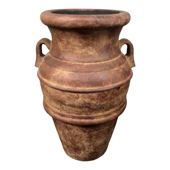 Design Plus Gallery presents a Large Clay Pot. The finish and look of a hand turned vessel, this clay pot could hold trailing vines or create the foundation for a large fountain. Elegant for inside use or outside use.