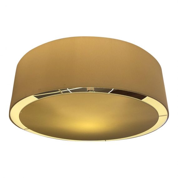 Large corrugated drum pendant . This fixture will give your room a great deal of style without breaking the bank. The drum itself is 10″ tall, the wiring can be extended up to 37″. It does come with a Chrome ceiling Collar.