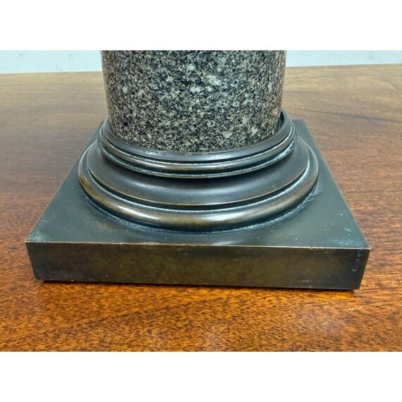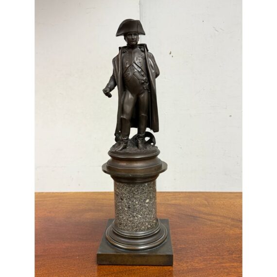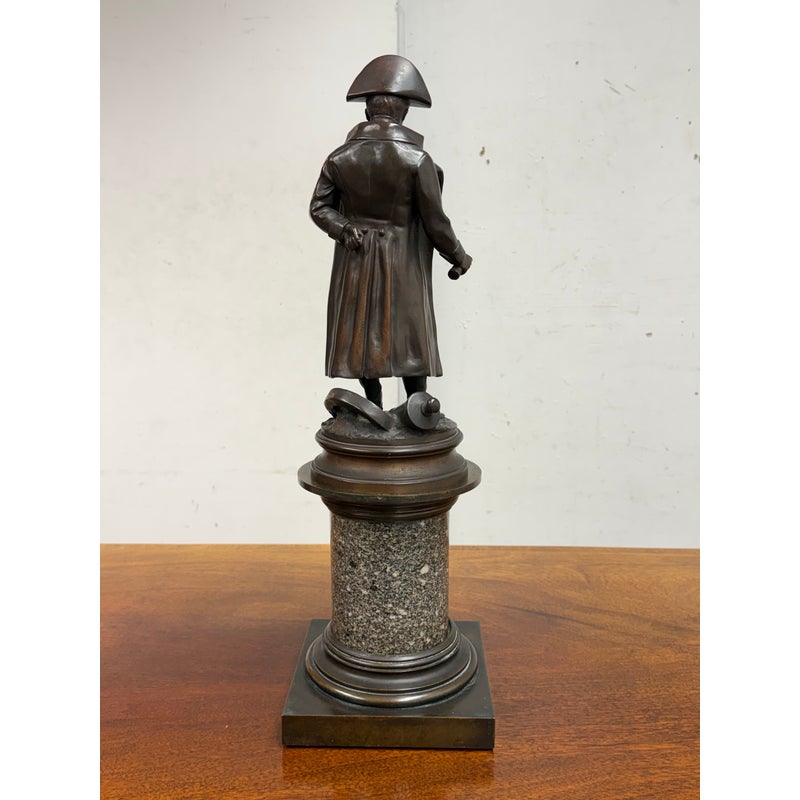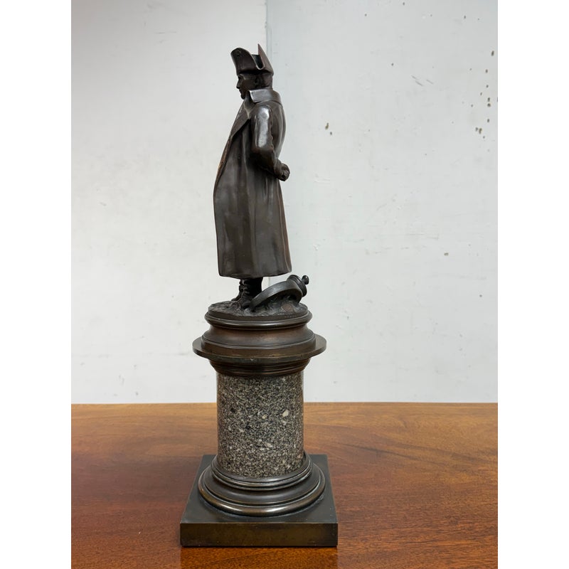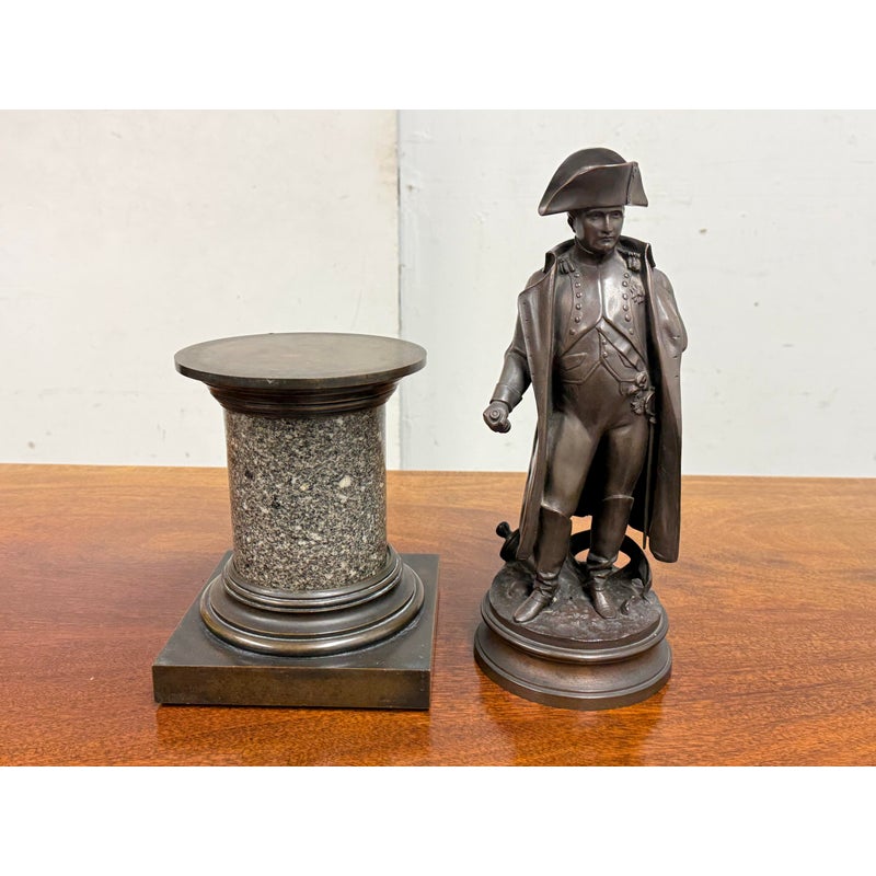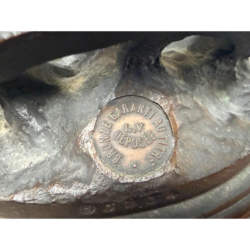 Design Plus Gallery presents a Two Piece Statue of Napoleon with the L.V. Deposee Stamp Late 19th Century. The bronze bust of Napoleon Bonaparte is the topping on a base, can be separated. There is a stamp on the base saying ‘L.V. Deposee Bronze Garanti Autire. Is in good condition with minimal visible signs of wear.