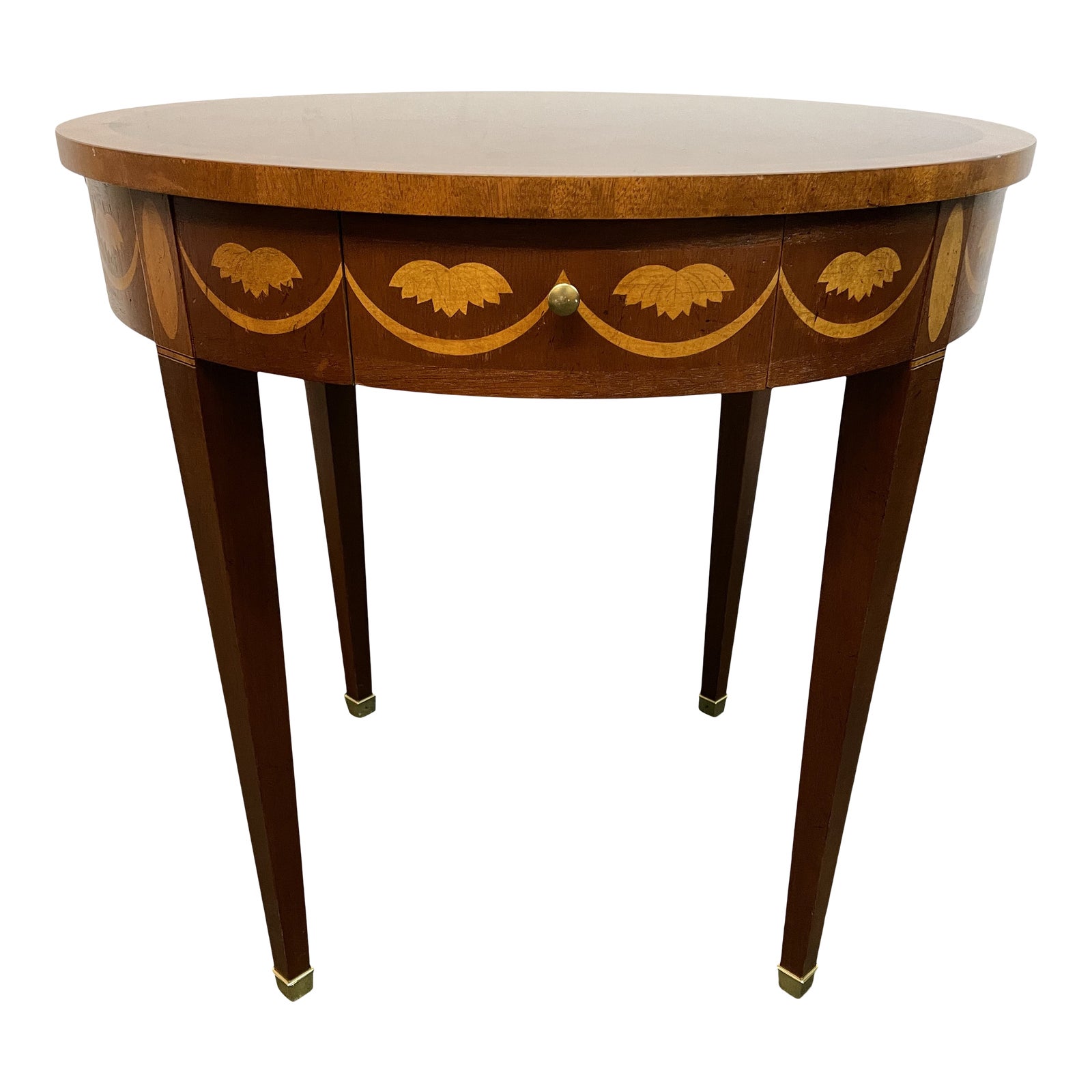 Late 20th Century Baker Furniture Leaf Motif Round Side Table