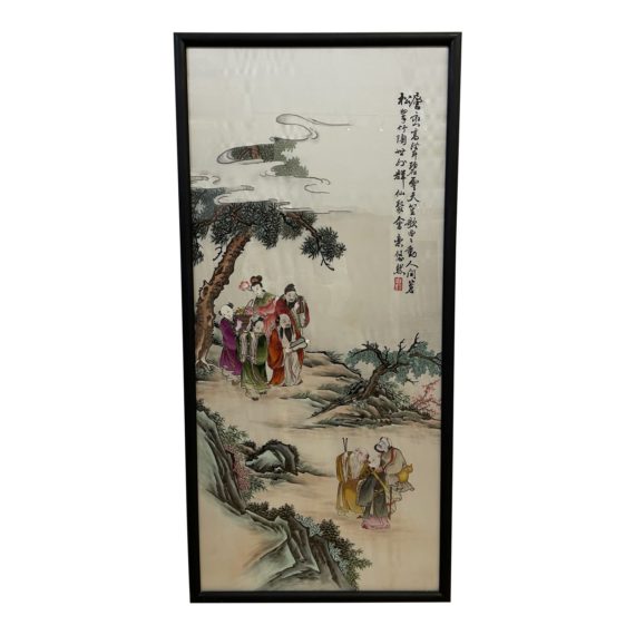 Late 20th Century Framed Chinese Embroidered + Hand Painted Silk Panel