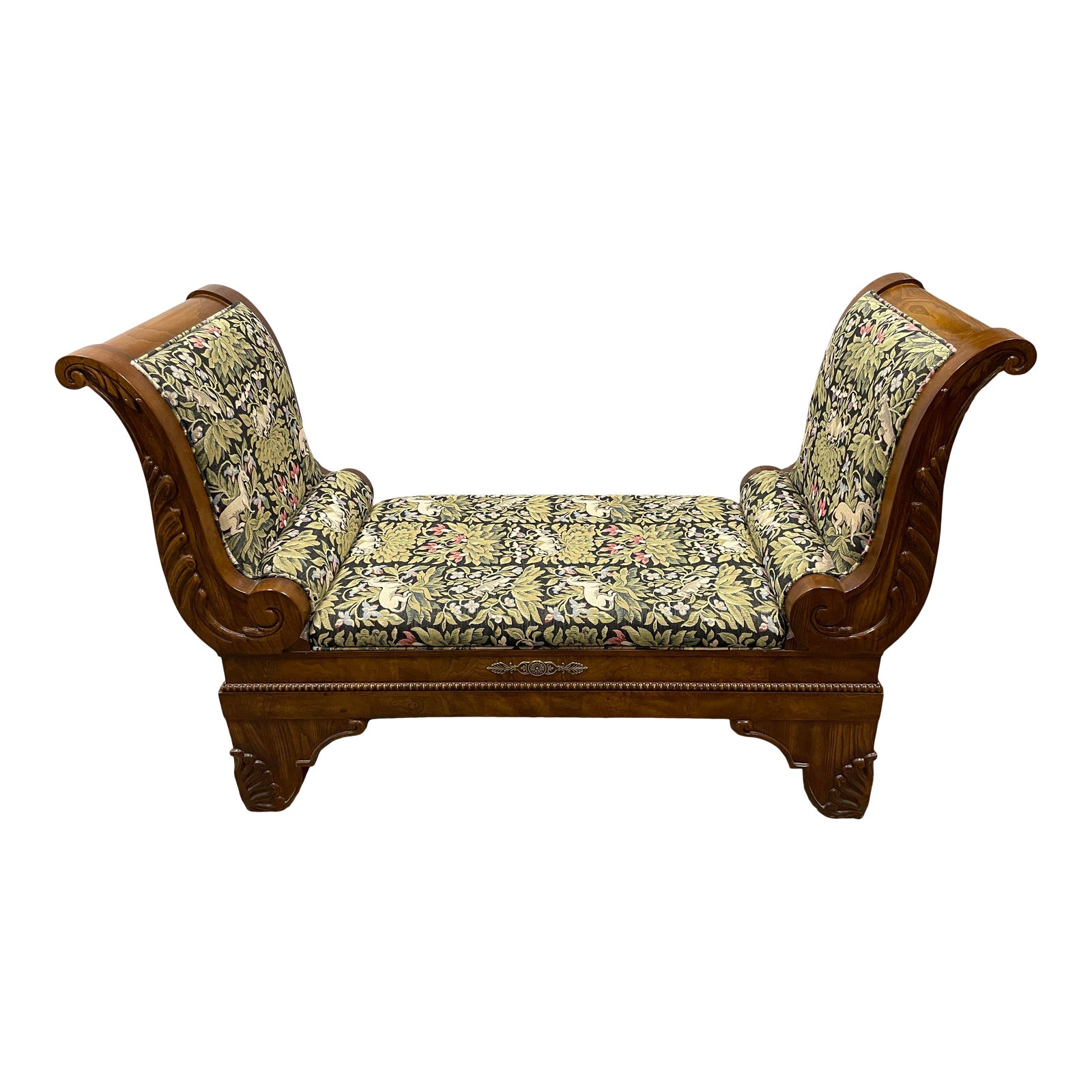 Late 20th Century Henredon Empire Style + Animal Tapestry Upholstered Bench