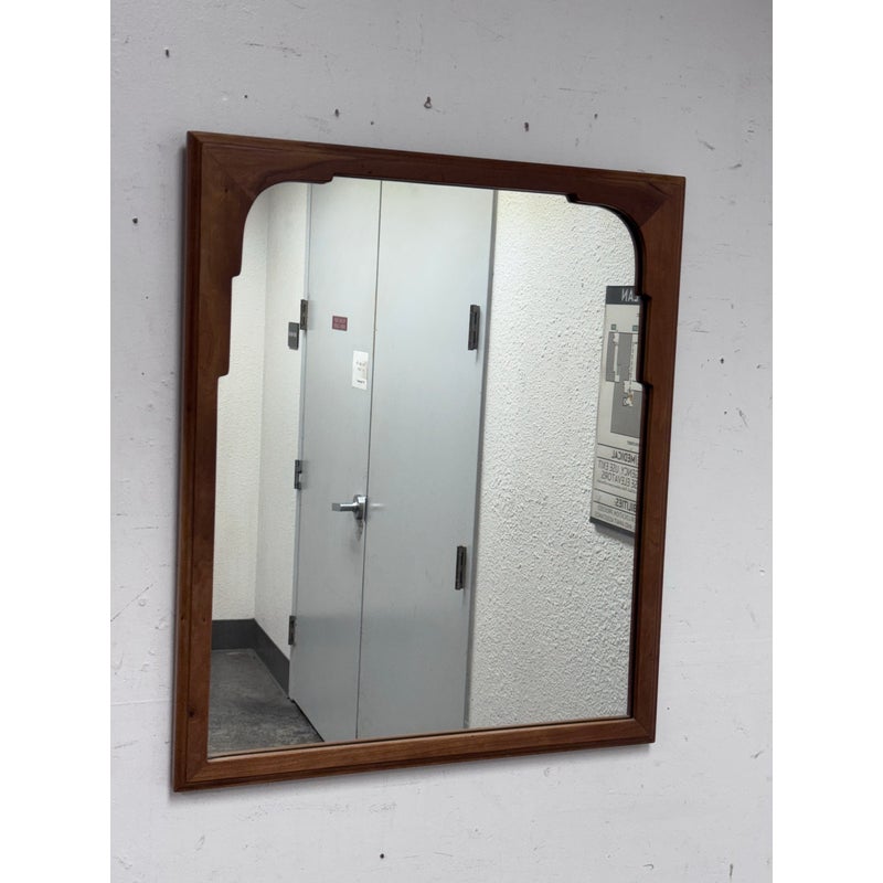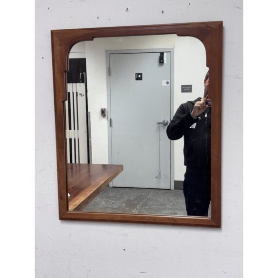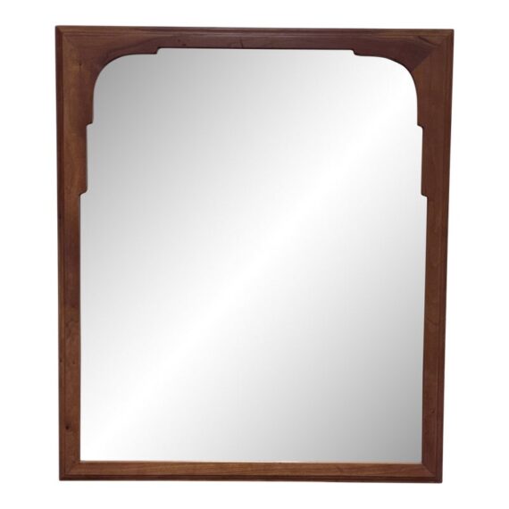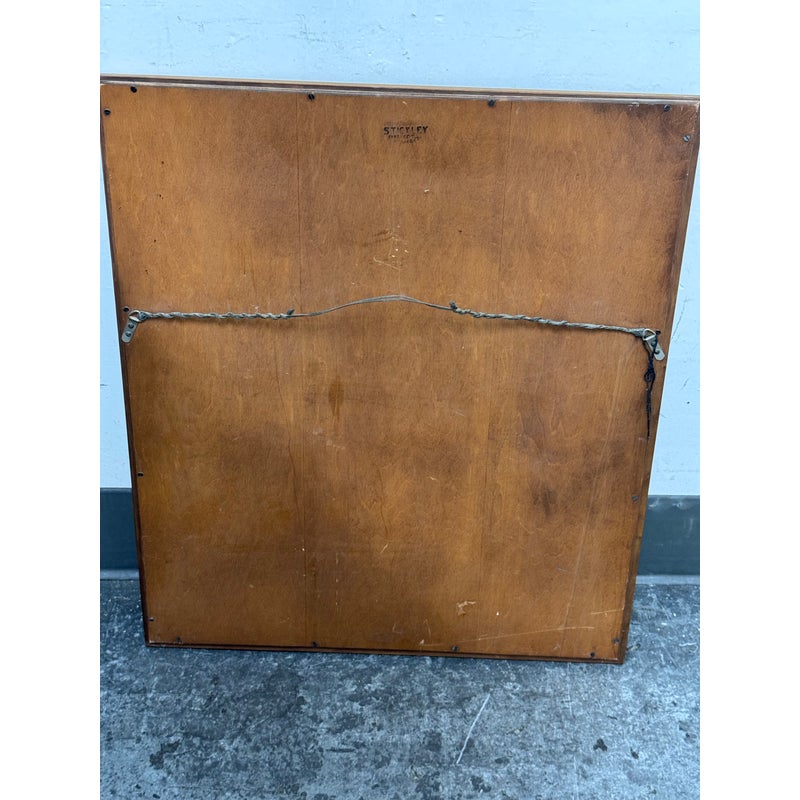 Design Plus Gallery presents a Vintage Wall Mirror by Stickley Furniture. This mirror displays the brands signature attention to proportion and enduring construction with a substantial wood frame and subtly shaped inner corners for architectural interest. A stamped Stickley mark on the reverse confirms its origin and authenticity, underscoring its appeal as both a functional mirror and a collectible furniture accessory. This is a discontinued model with the brand. and is in good condition, visible and minimal wear from usage. Made in USA.
