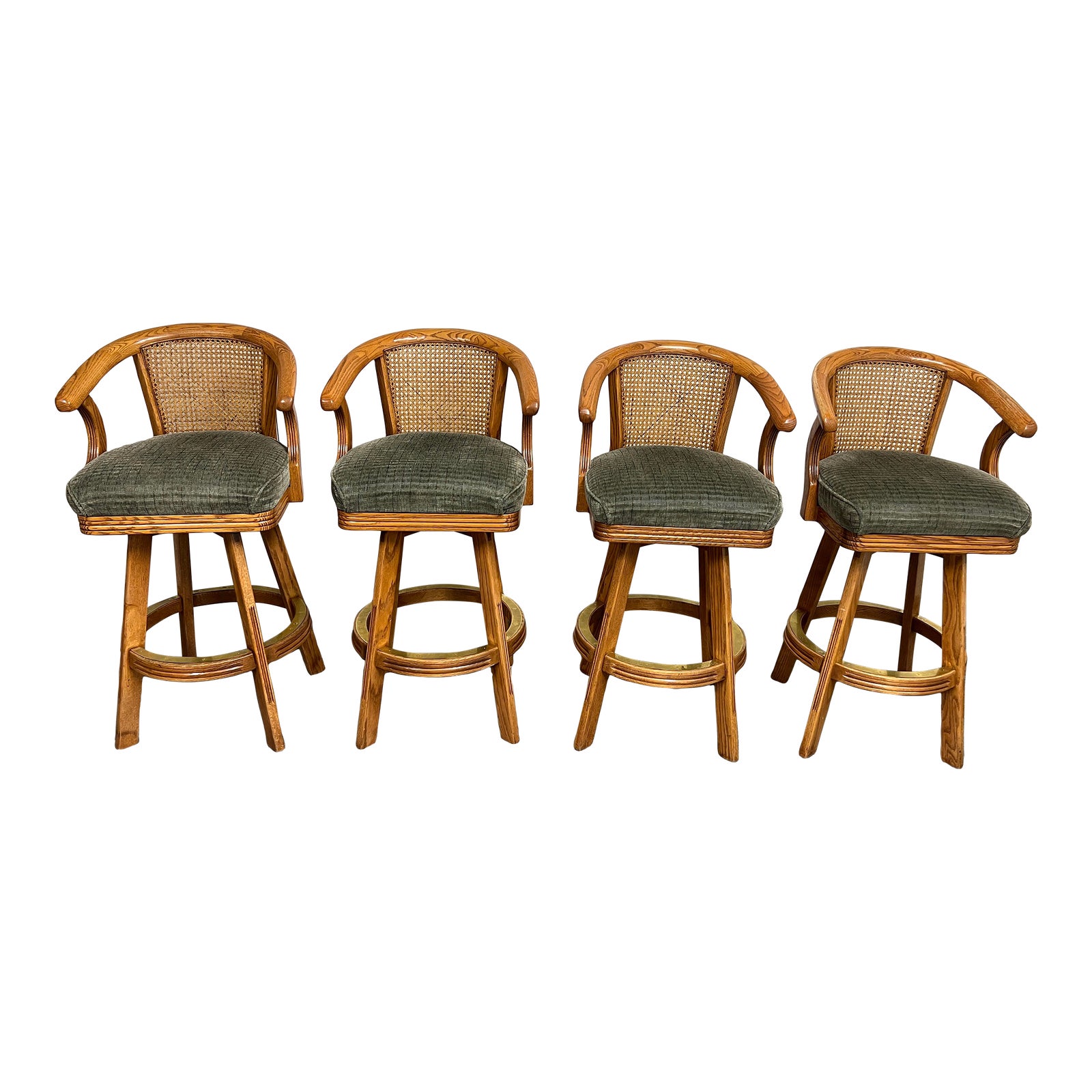 Late 20th Century Swivel Caned Barstools – Set of Four
