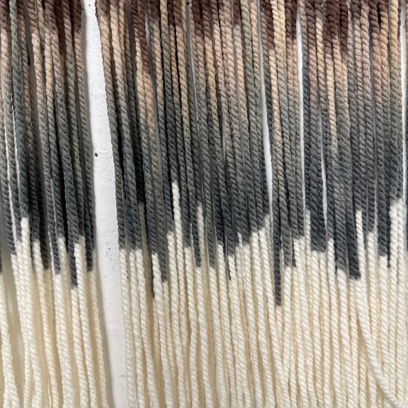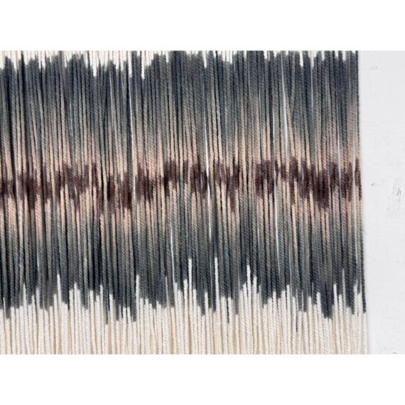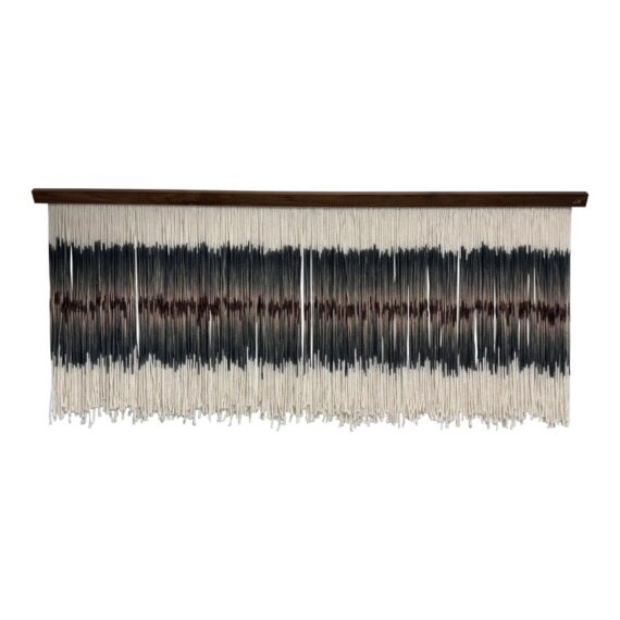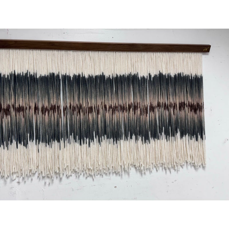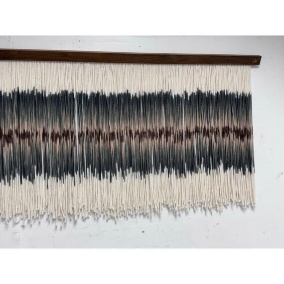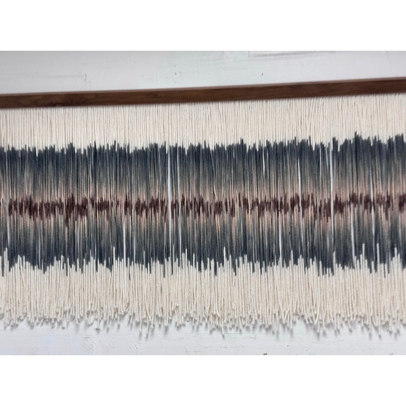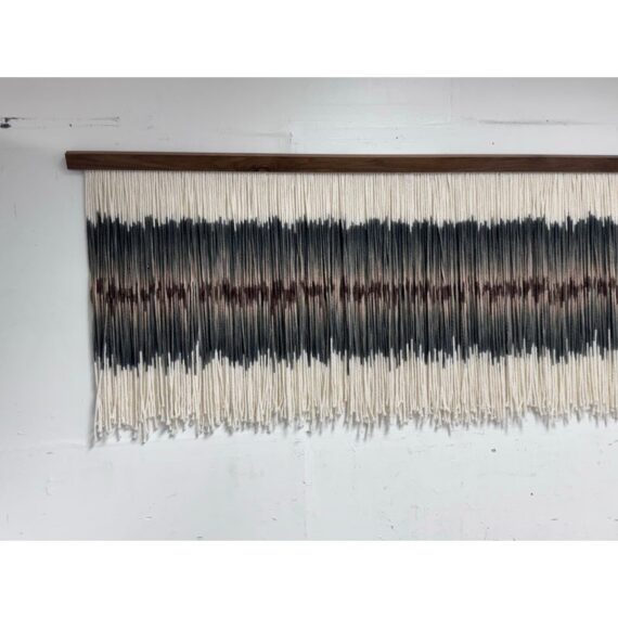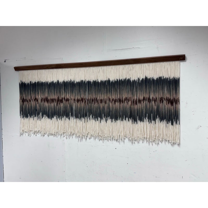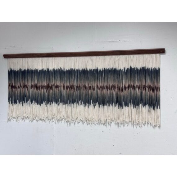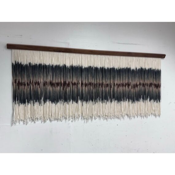 Design Plus Gallery presents an Original Art Piece by Lauren Williams called “Sweet Child of Mine”. The self-taught artist from Dallas created this moving “canvas” by suspending and dip dyeing 100’s of custom spun wool strands to create the striking effect. Her work encompasses many materials, but prefers the natural elements of fibers and wood, seen here. Signed by the artist on upper right. Condition is good. Made in the USA.