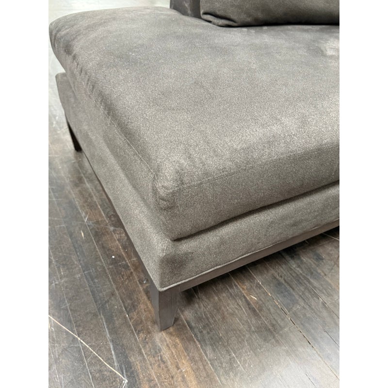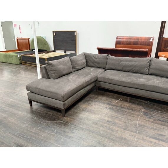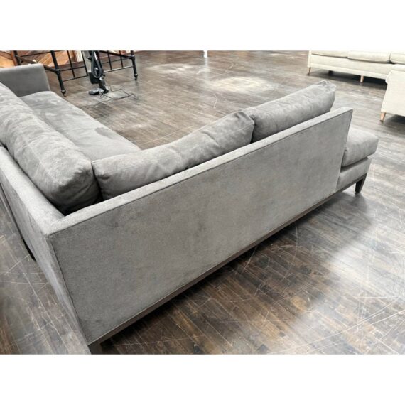 Design Plus Gallery presents the Model #3583 Sectional from Lee Industries. Its generous size with a chaise and extended sofa provides ample seating, while the structured arms and low-profile silhouette create a balanced and modern presence. The generously padded cushions are removable it is completely upholstered in a soft gray performance fabric. The sectional sits on tapered wood legs that add subtle contrast and complement the streamlined frame. Thoughtful construction and quality materials reflect Lee Industries’ commitment to durability and long-lasting performance. It is in good condition, visible and minimal wear on the fabric from usage. Made in the USA.
