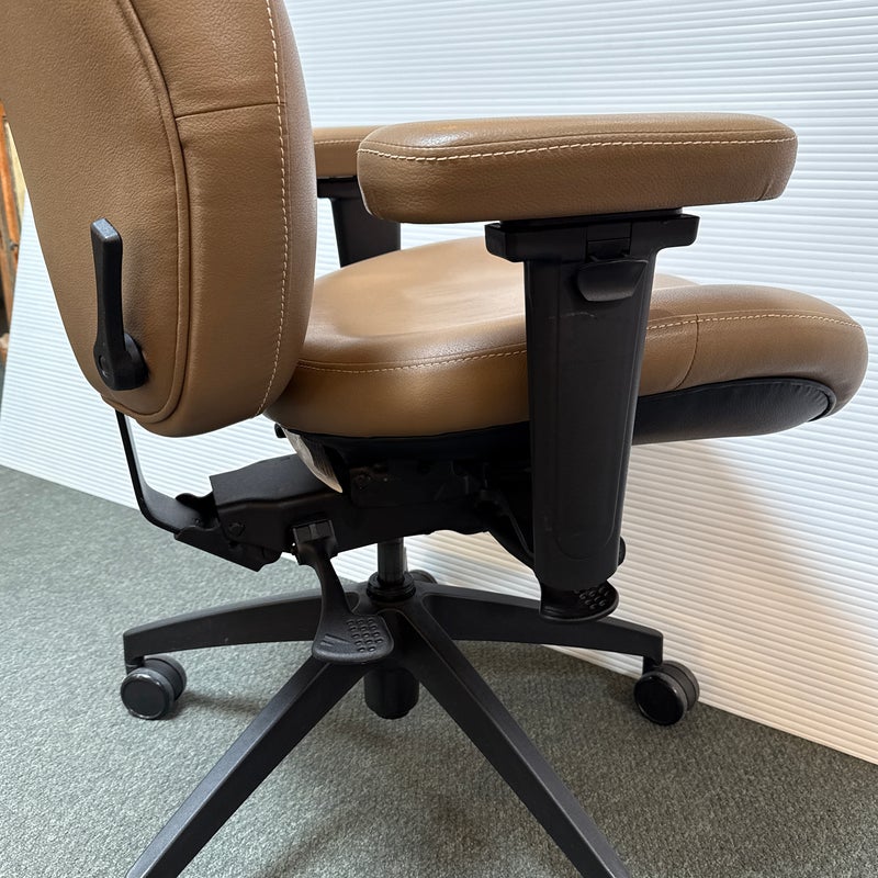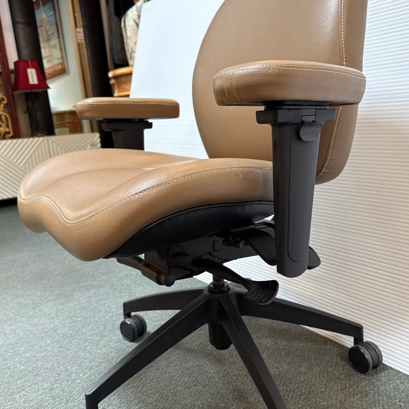 Design Plus Gallery presents Balance Deluxe Mid-Back Leather Office Chair from Lifeform. What you will love is this versatile, comfortable and great looking chair for any work environment. Whether you’re buying a chair for work or study, our Balance Deluxe adjusts to you and gives you a feeling of well-being and support. With adjustable armrests, LIFE-Foam™ Memory Foam swivel arm pads, seat back and height adjustment – you’ll be more comfortable and able to focus. The Balance Deluxe has a contoured seat with with front waterfall edge that brings greater support and comfort with unrestricted blood circulation behind the knees. You’ll stay productive while you’re working and finish the day with less body fatigue. The temperature and pressure-sensitive Memory Foam seat conforms to your body’s unique contours to further reduce pressure on bones and joints. Is in good condition, visible and minimal wear for its usage.