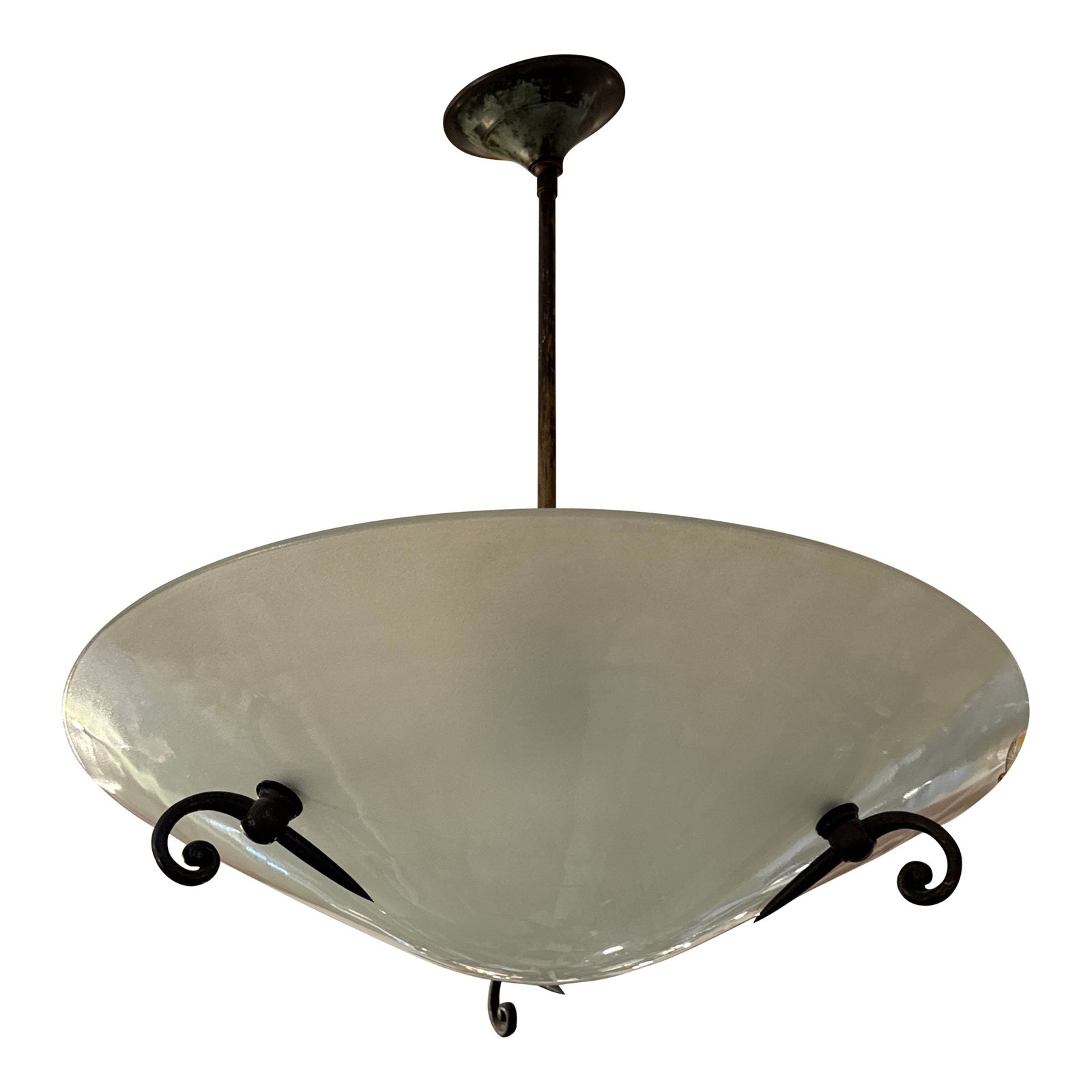 Lightspann Custom Art Glass Dome + Wrought Iron Pendant Light. Original Price: $1,299
