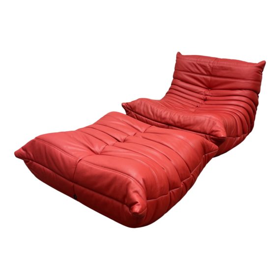 Ligne Roset Michel Ducaroy Red Leather Togo Chair + Ottoman
