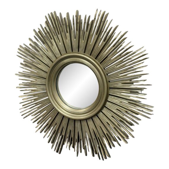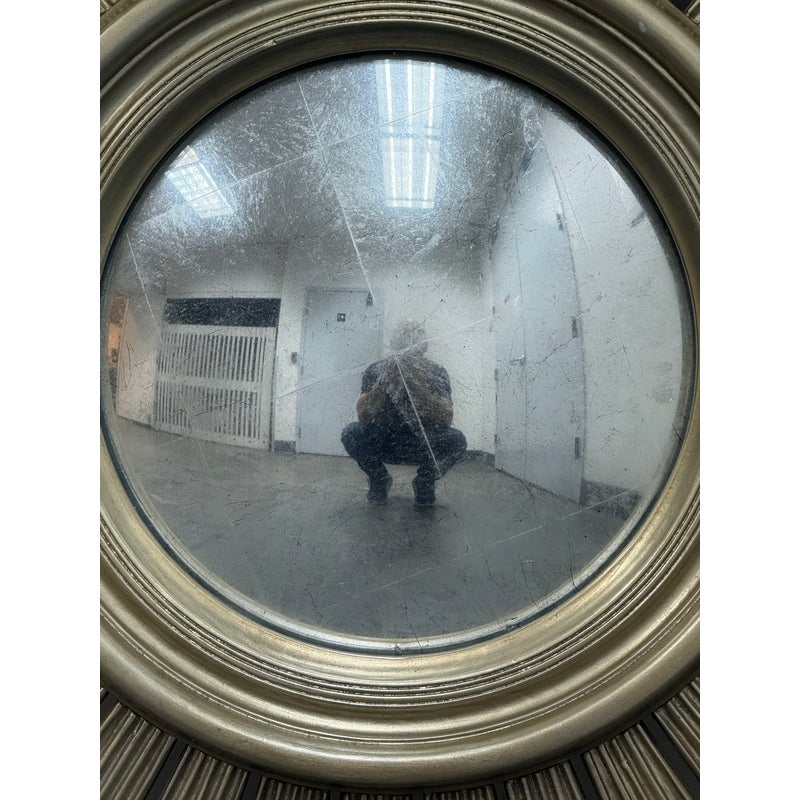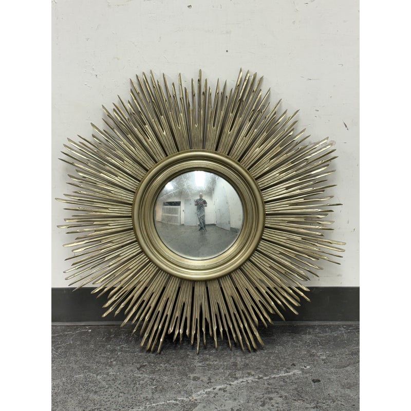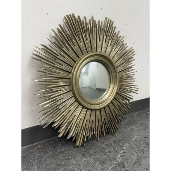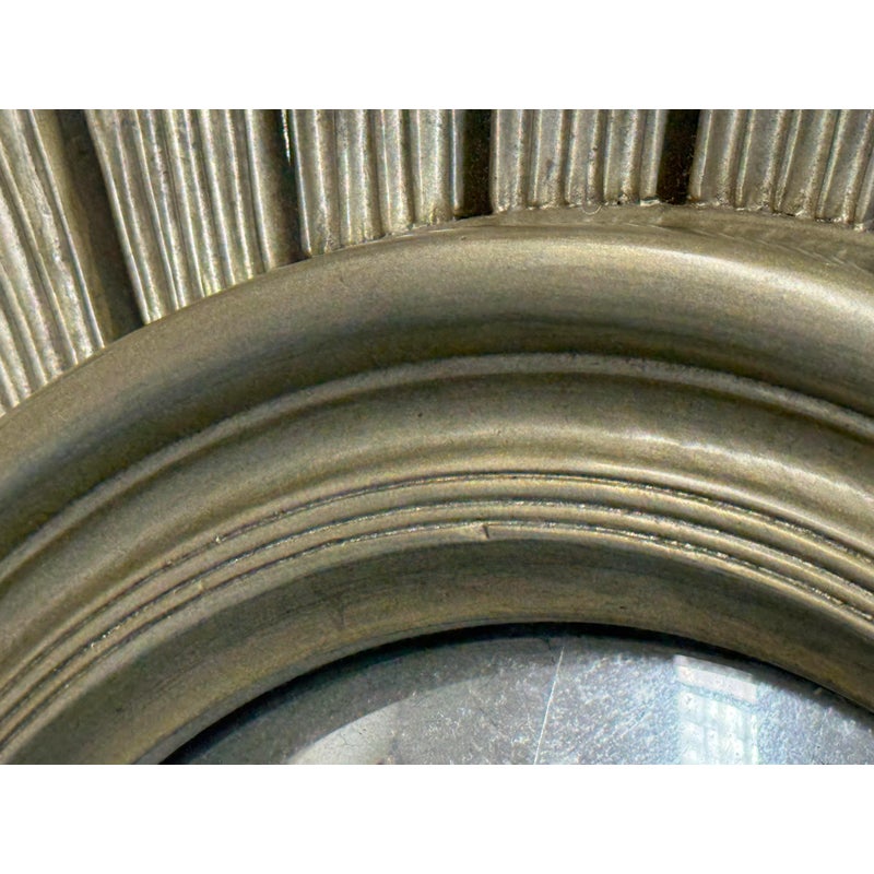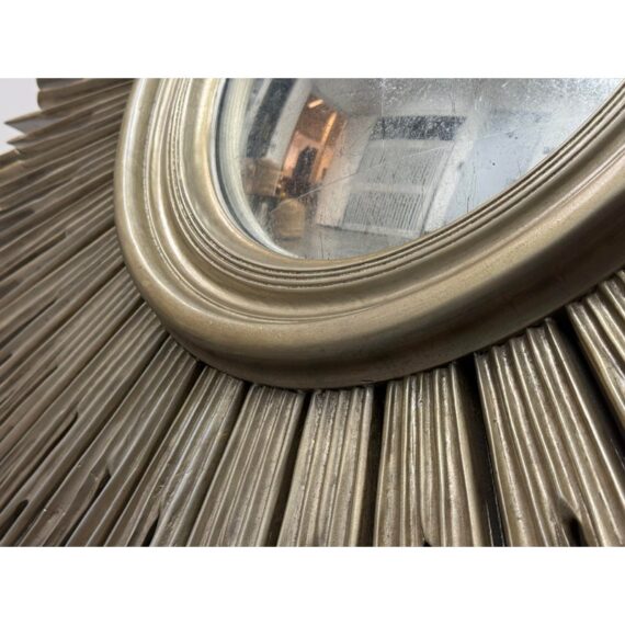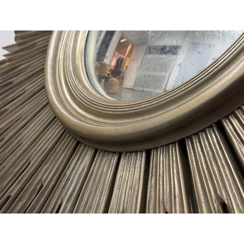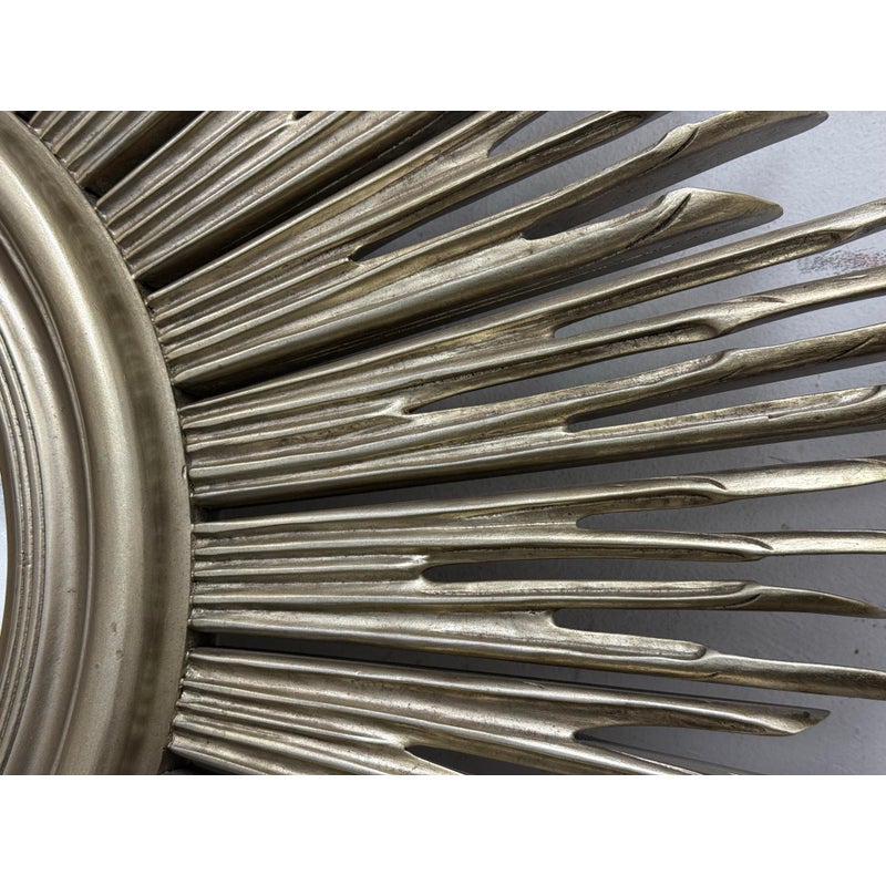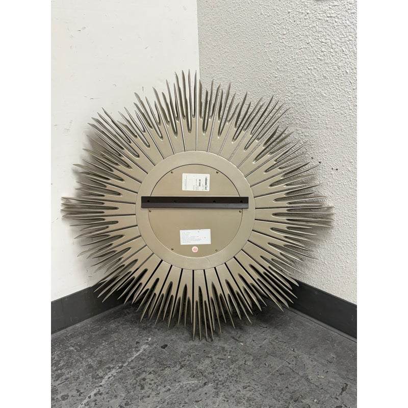 Design Plus Gallery presents the Maddox Wall Mirror from Lillian August. The mirror has been hand-craved with wooden sunburst’s hand painted in their brand Aged Silver finish with their Aged Burnished highlights for dimension. A delicate bezel around the mirror gives it a jewelry like detail. The mirror is in good condition for its usage.