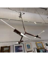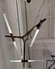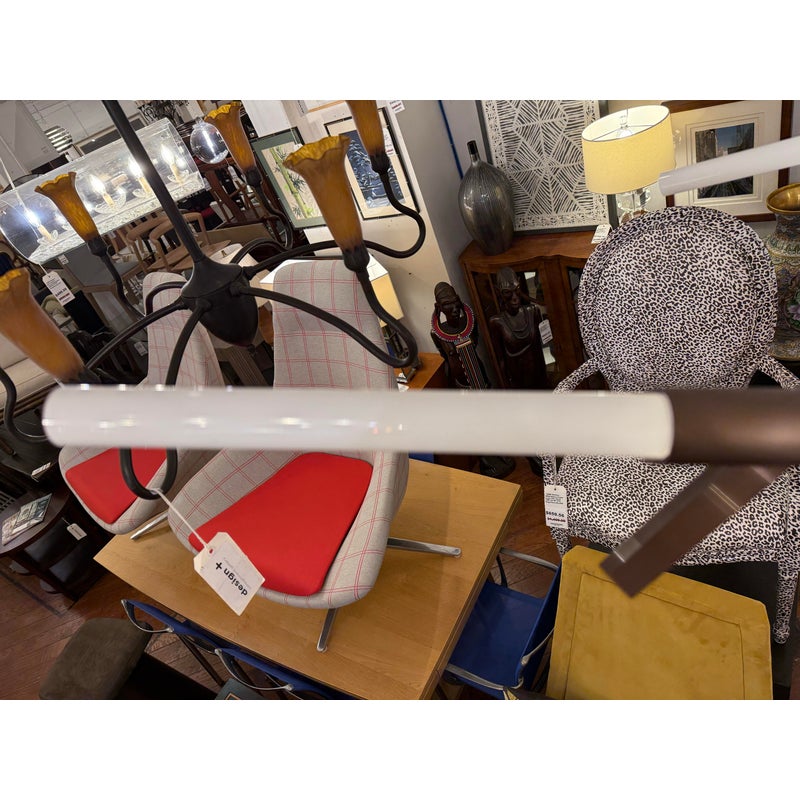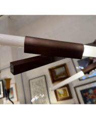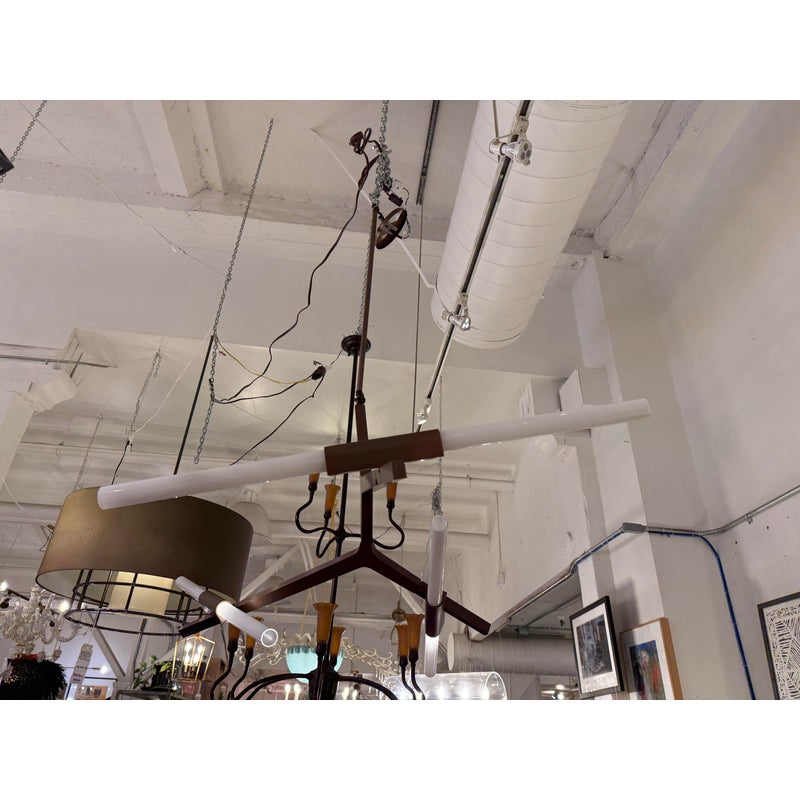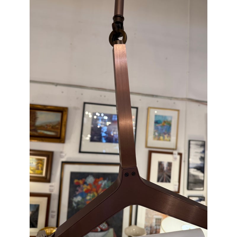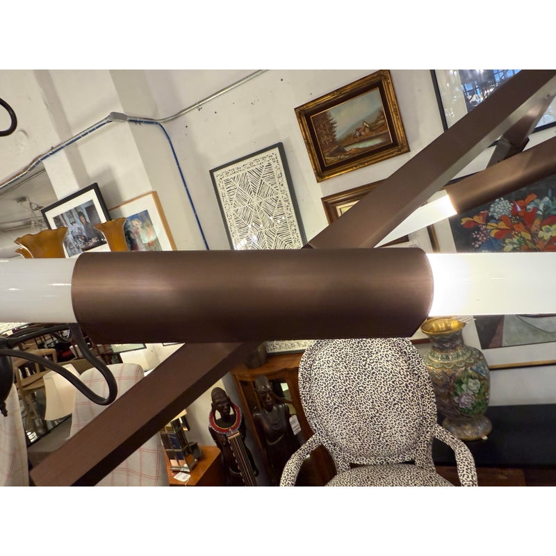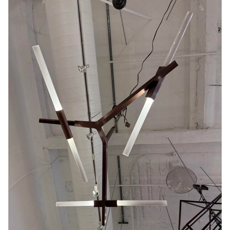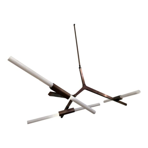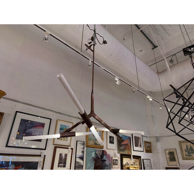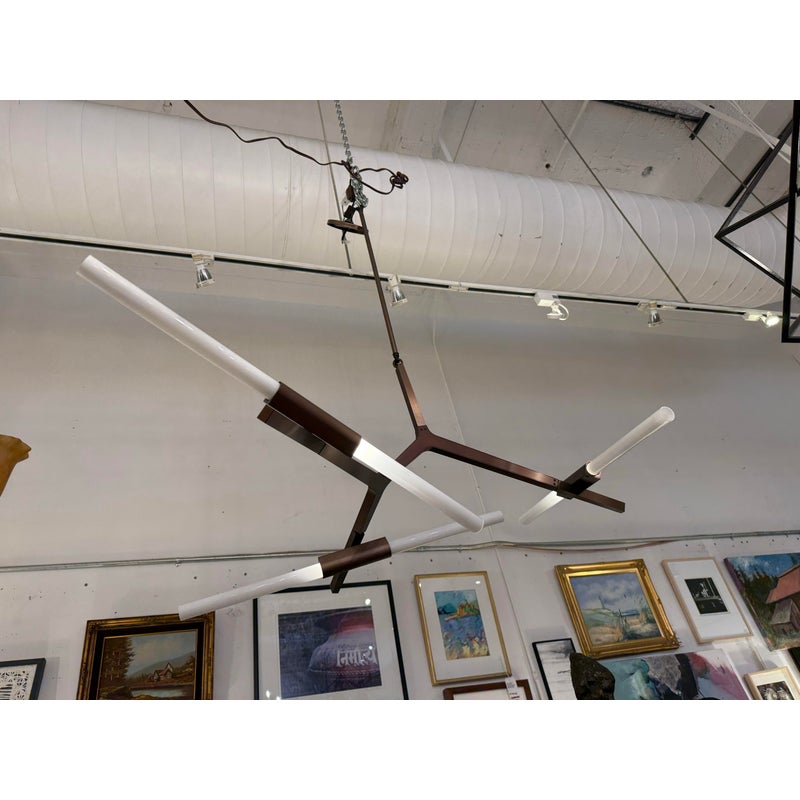 Design Plus Gallery presents the Agnes Chandelier Designed by Lindsey Adelman for Roll & Hill Agnes. The Agnes Chandelier offers a unique shape composed of linear metal segments of bronze and glass tube diffusers to form a molecule-like structure. The chandelier’s dramatic silhouette and geometric lines give it a futuristic aesthetic that is sure to attract attention. The chandelier is in good condition with minimal surface wear for its usage.
