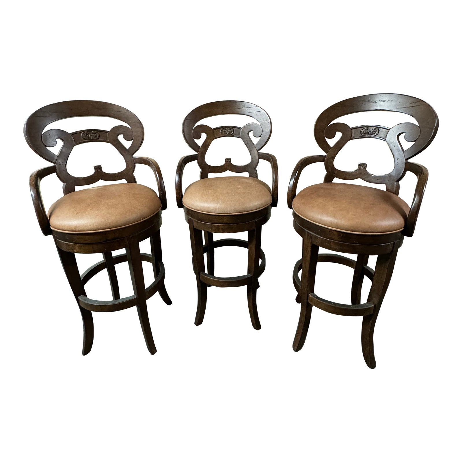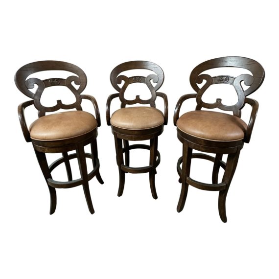 Lorts Manufacturing Custom Swivel Leather Barstool #9612, Set of Three. Original Price: $6,000