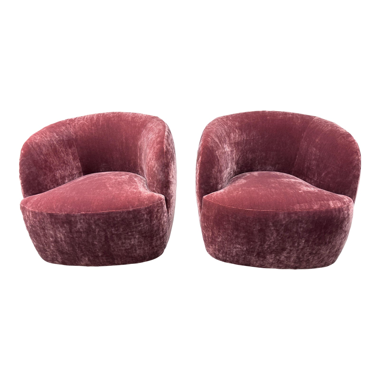 Lowen Swivel Chair in Rose Velvet, a Pair. Original Price: $2,200