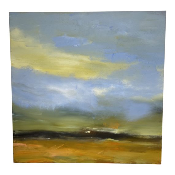 Design Plus Gallery presents a Luc Leestemaker “Landscape 2004-04” – Mixed Media on Canvas. Painted in 2004. The composition is anchored by a horizon line in warm tones. A cloudy blue sky floats above. Visible wear through out, painting is in good condition. The paint is mixed with a sandy paste for textural affect. Little evidence of wear, painting is in good condition. Painting is fully finished along the sides and comes with wire on the back, ready for hanging. Originally purchased at the Galerie d’Orsay in Boston.
