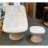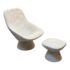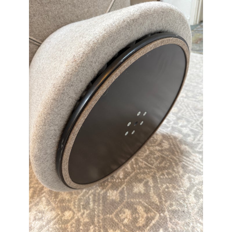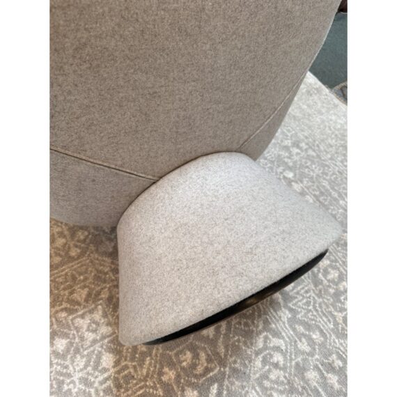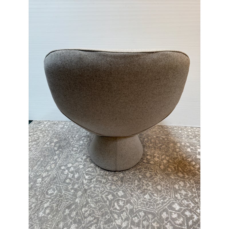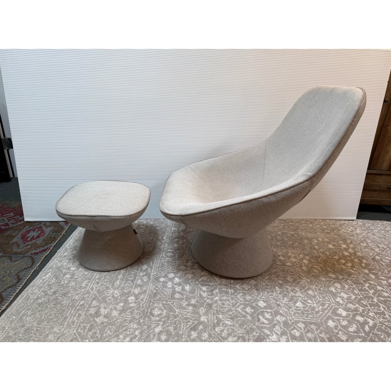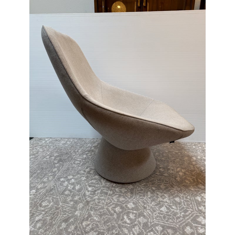 Design Plus Gallery presents a Pala Swivel Chair and Ottoman Set by Luca Nichetto for Artifort. The pieces are manufactured in the Netherlands and was designed by Luca Nichetto. The Pala set are must-have pieces as they pair comfort with style, so there’s no need to sacrifice one for the other. The bold silhouette instantly elevates the room’s style and follows the shape of the human body to make it a one-of-a-kind sculptural beauty. Thanks to the soft upholstery, cushioned lining, and deep seat, the chair provides comfort and support. The addition of its complimentary footstool forms a cohesive look in your home. The taupe textured upholstery is a luxury as well, perfect neutral for most spaces to invite you to sink into. They are both in good condition with minimal signs of visible wear for their sage. Made in the Netherlands.