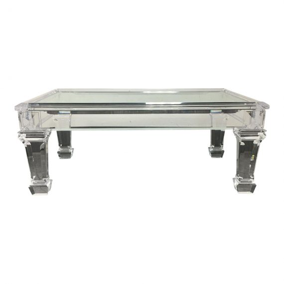 Design Plus Gallery has an almost invisible coffee table. The table base is rather traditional in design but it is made of solid Lucite which sends it right into the Contemporary side of things. The table top itself is clear glass which adds even more to its virtual invisibility. This is a stunning coffee table! It is a definite conversation piece!