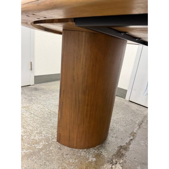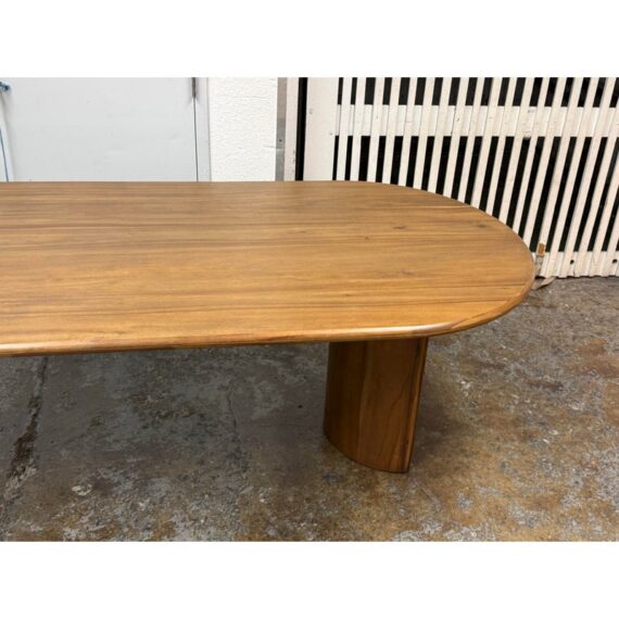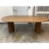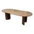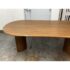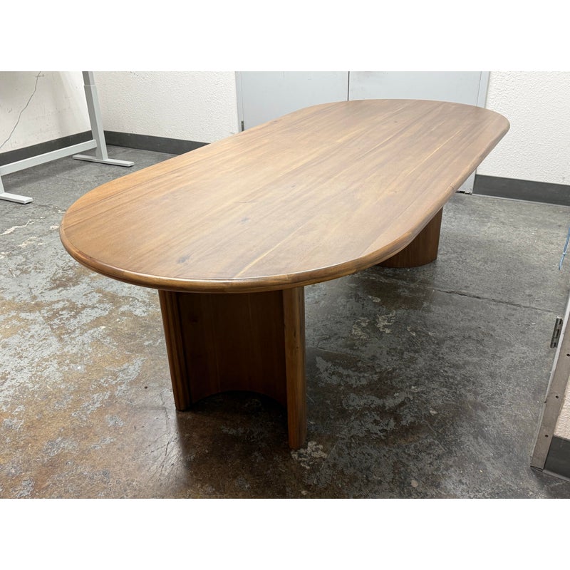 Design Plus Gallery presents a Gilda Oval Dining Table from Lulu and Georgia. Defined by an elongated oval top and sculptural pedestal supports, this table pairs rounded contours with acacia wood veneer construction and visible natural grain variation for an organic, contemporary look. Lulu and Georgia notes that the design comfortably seats six and is contract grade. It is in good condition with visible and minimal wear from usage. Made in Vietnam.