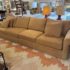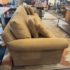 Design Plus Gallery presents a Two Piece Modern Concepts Doss Sofa by Macys. Lightly textured microfiber upholstery in a warm Dijon hue, the roll arm pair can be positioned together or apart for your ideal gathering space. Loose foam filled back and seat cushions. Light surface wear; a few spots on one cushion; condition is good for age and use.