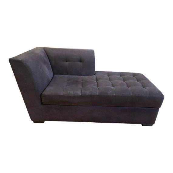 Design Plus Gallery presents a Roxanne Chaise. Retro-inspired angular shapes, sharp lines and tufting of this ultra soft and plush modular chaise. Tufted seats and backs. The legs are removable.