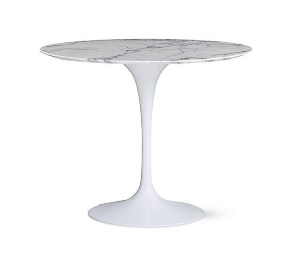 Design Plus Gallery presents a Knoll Saarinen 35″ marble top tulip base dining Ttable. With the Pedestal Collection, Eero Saarinen resolved the “ugly, confusing, unrestful world” underneath tables and chairs. The collection is a defining accomplishment of modern design and a timeless addition to your home—a true classic. This piece has Arabescato Marble top surface.
