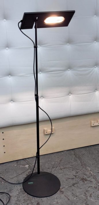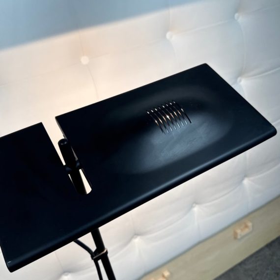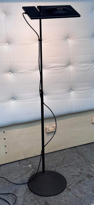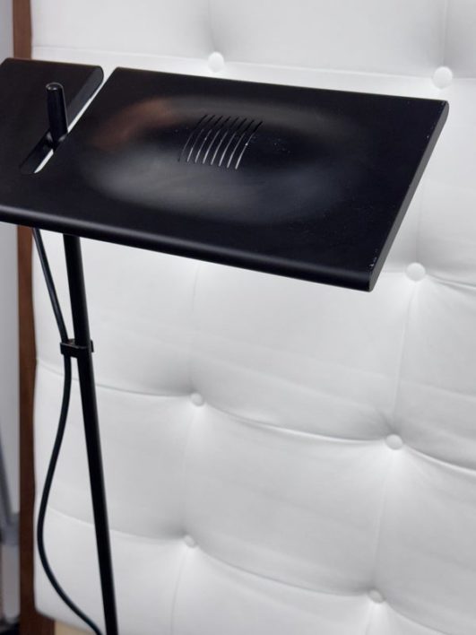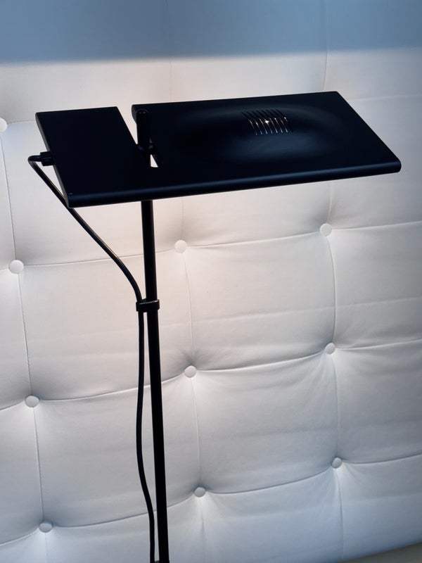 Design Plus Gallery presents an Italian Floor Lamp, the Duna Designed by Marco Colombo & Mario Barbaglia. Designed for Paf Studio and for Italiana Luce in 1984. This version is from the nineties and made by Italiana Luce. The lamp is made of black metal. The hood can be tilted and rotated 360 degrees (see photos), and the height is also adjustable. It provides nice direct light for reading and indirect light on the wall or ceiling. Is in good condition for its vintage age.