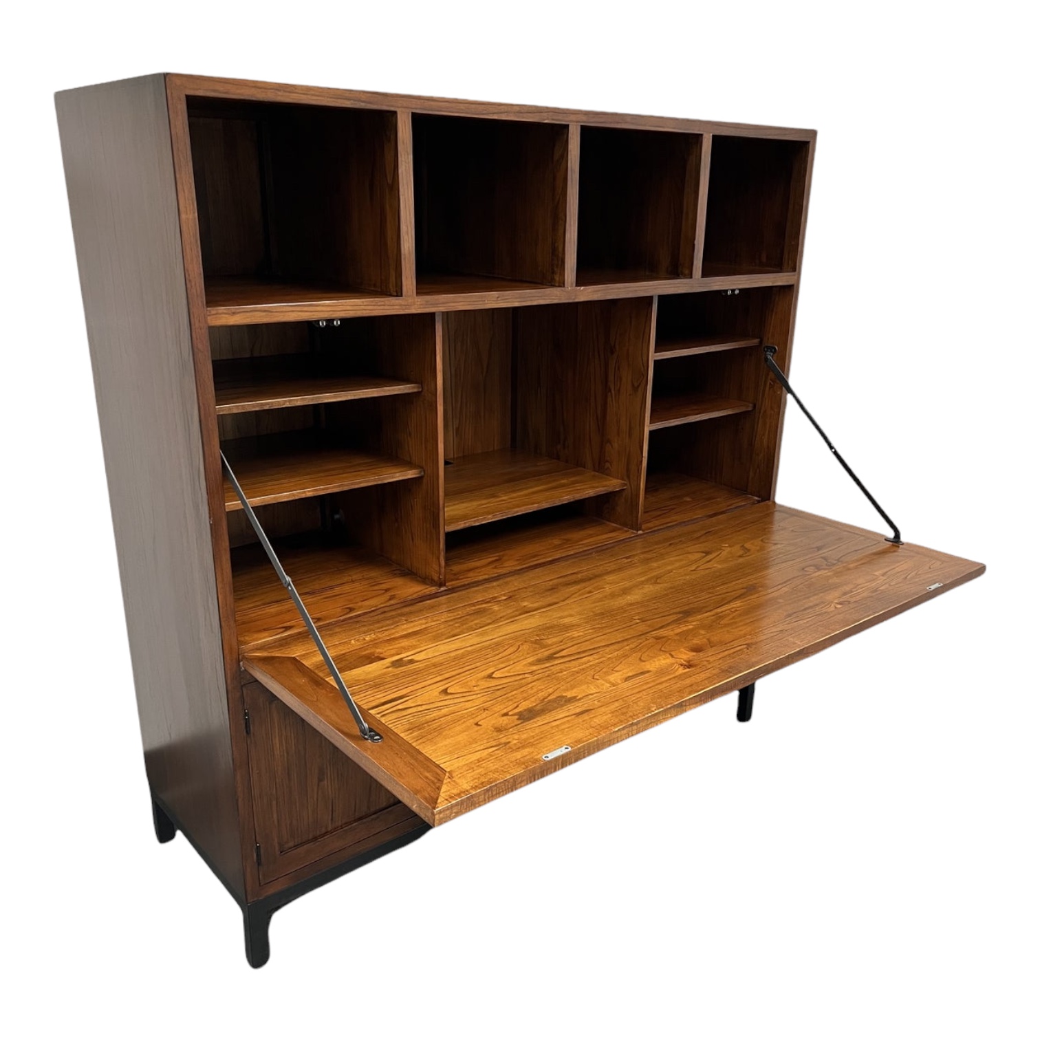 Design Plus Gallery presents a Maria Yee for Room & Board Home Sukiya Office Armoire. This cabinet is inspired by antique Japanese tansu cabinets. Constructed of responsibly forested Chinese hardwood using dovetail joinery techniques. Floating panels prevent warping and cracking. Base is anchored with a natural steel base and pulls. Expansive unit creates an office anywhere. the base includes a pair of small drawers for writing utensils and two larger ones for files. Additionally there is full wire management throughout. There is minor wear through out, unit is in good condition.
