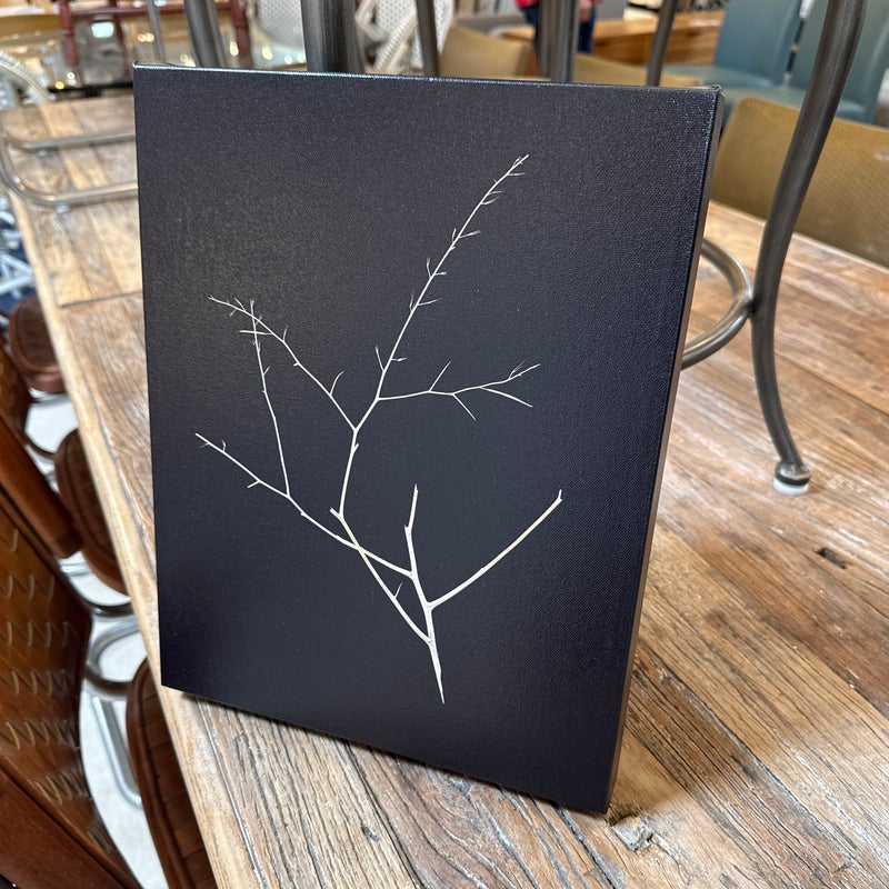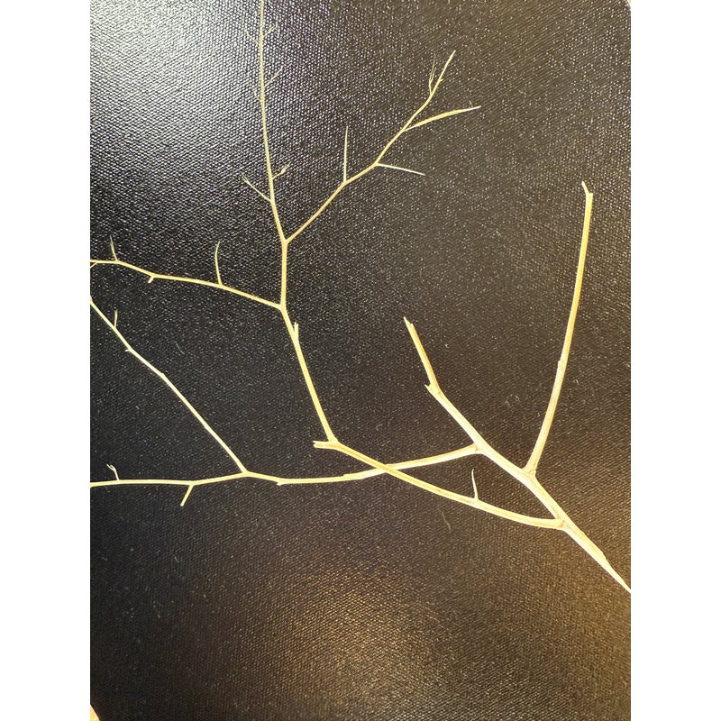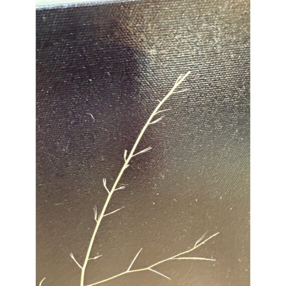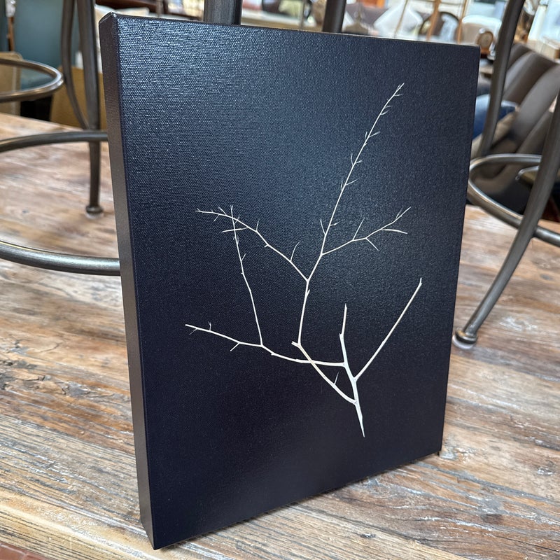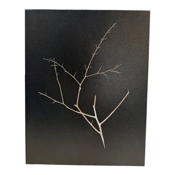 Design Plus Gallery presents “Weeds Messenger” by Mark Stephenson. The original photography was aqueous pigmented inkjet on canvas; this true reproduction shows the studio lit twig in deep contrast on gallery wrapped frame. Limited print number 35 of 200 is written on back with title & signature. Condition is good.