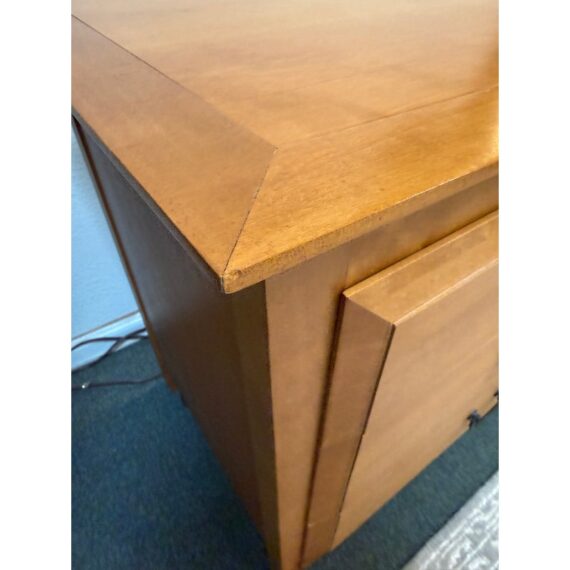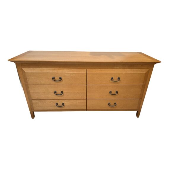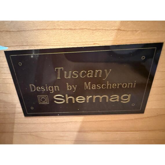 Design Plus Gallery presents the Tuscany Dresser by Mascheroni Sherman. Nothing like a quality piece of solid maple wood that was made efficiently and affordably. The dresser is made up of six equal sized drawers with pewter finished hardware drawer pulls and rests of slightly tapered legs. It has the brand plate on the inside of the drawer along with stamps on its backside for authenticity. It shows minimal signs of wear for its usage and is in good condition. Made in Canada.