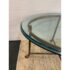 Design Plus Gallery presents a Mastercraft Style Brass Coffee Table. The table has hoof feet with a thick racetrack glass top. The base shows a well-aged patina, and the oval heavy glass top is beveled. This table is craftsmanship pure and is a great addition to any interior design. It is in good overall condition for its usage with patina to the metal and small scratches to the glass.