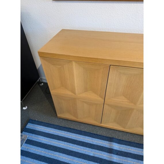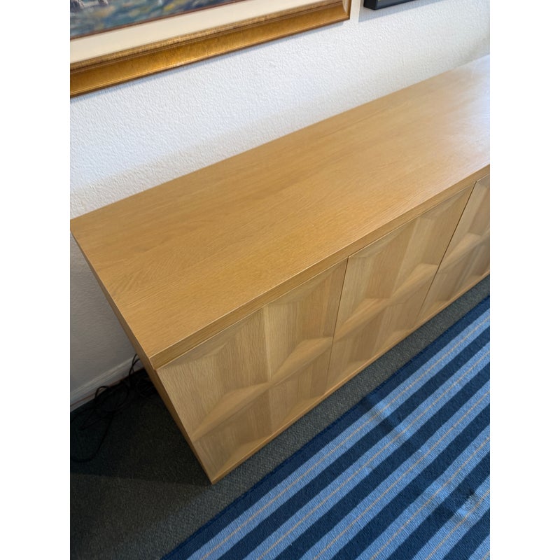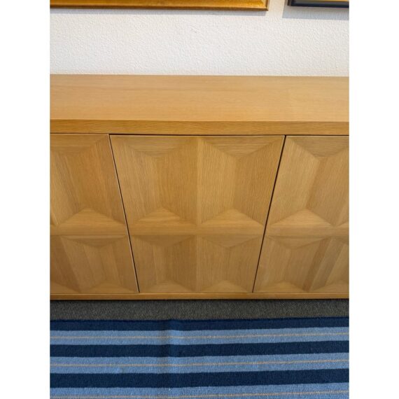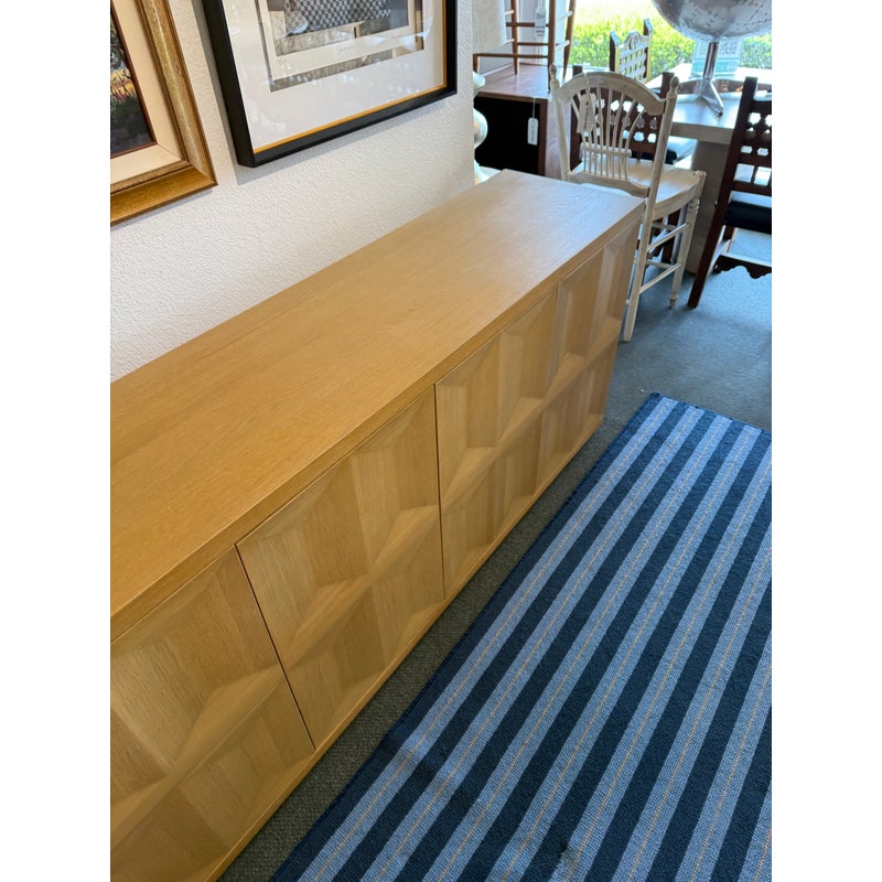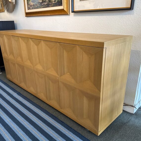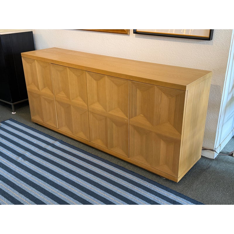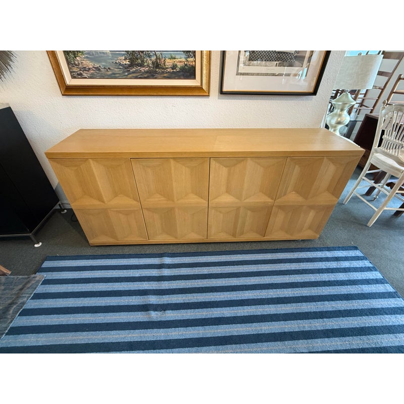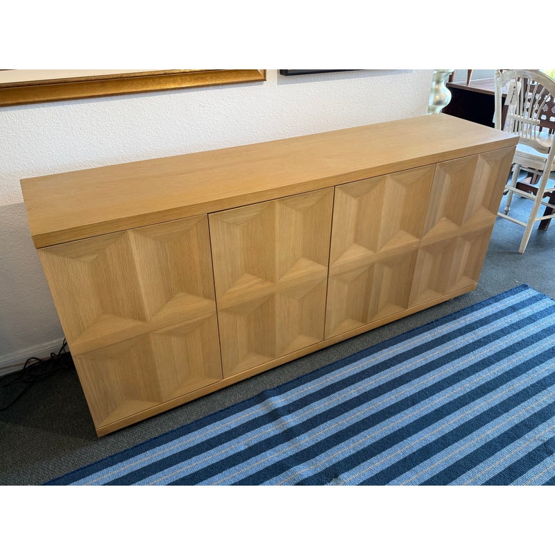 Design Plus Gallery presents the Beacon Sideboard from McGee & Co. The Beacon Sideboard features repeated diamond-carved panels, each beveled inward to create depth and visual dimension, taking a streamlined approach to intricate design. Geometric precision meets organic warmth in a piece as considered as it is functional, with spacious storage that makes it as practical as it is beautiful. It is in good overall condition for its usage with minimal signs of wear. Made in the USA.
