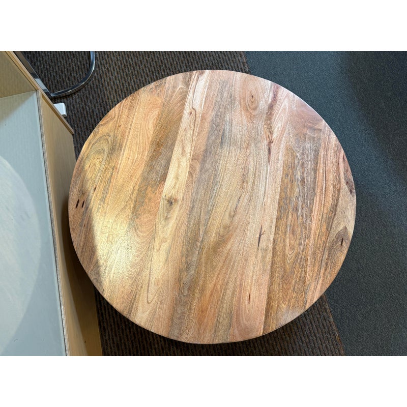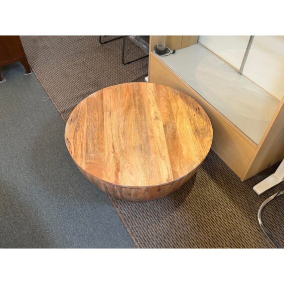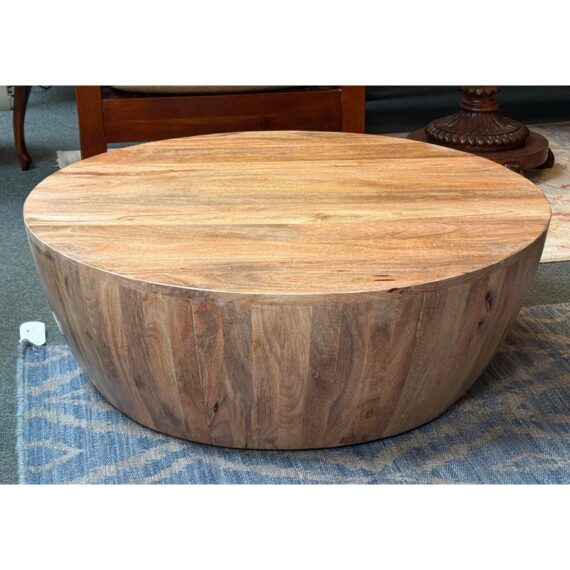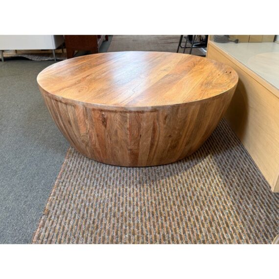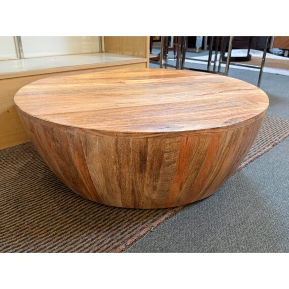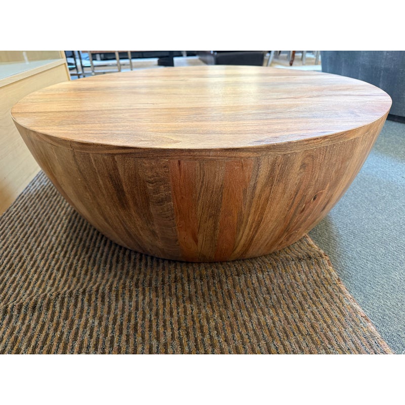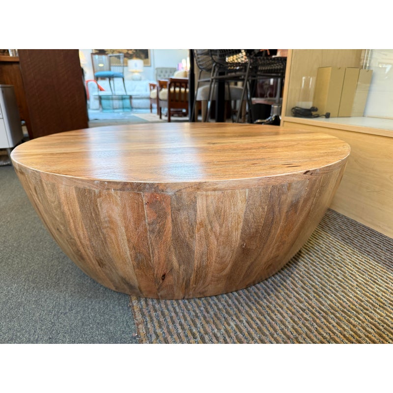 Design Plus Gallery presents the Jensen Coffee Table from McGee & Co. The Jensen coffee table has a gentle curves with surrounding wooden slats to create a sturdy table. It is finished with a sensational tobacco wash to bring a touch of nature into your home. It is made from natural materials so each one is unique to others. Visible surface wear is present to the table top, as shown, but overall it is in good condition. Made in India.