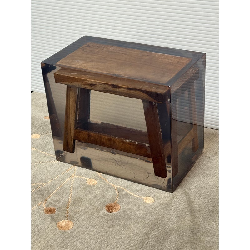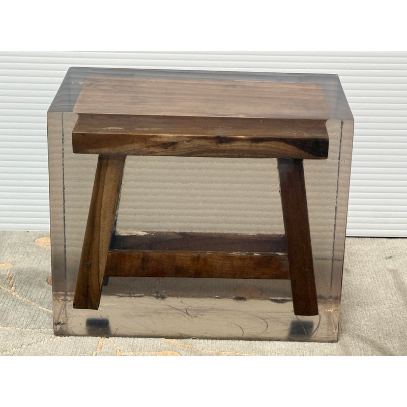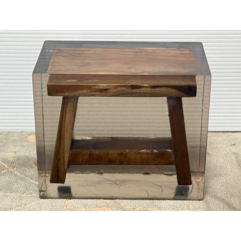 Design Plus Gallery presents the Tanek Stool for Made Goods by Mecox Garden. Turn home decor on its head with this surrealist stool that is housed in acrylic. You and your guests will shake your heads at this deeply inspiring and conversational piece of home furniture or could it so be called, art. The stool/art has small chips on lower edge; with minimal wear for its usage.