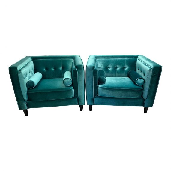 Meriden – Pair of Malachite Green Velvet Arm Chairs.