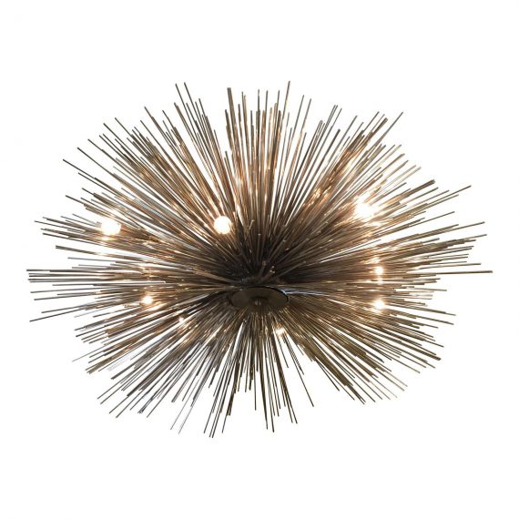 Design Plus Gallery presents a Metallic Urchin Chandelier. This Fixture boasts eight lights. This piece has a major Mid-Century attitude and would shine in any home bending its design eye in that direction.